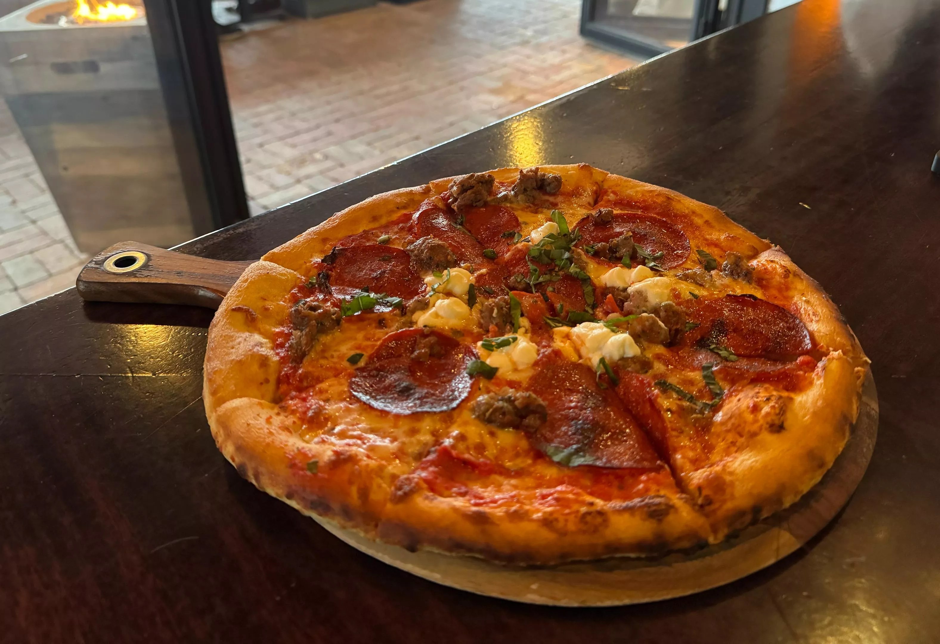 The Mob Ties pizza from Orchard Tavern holds up under the weight of its toppings.