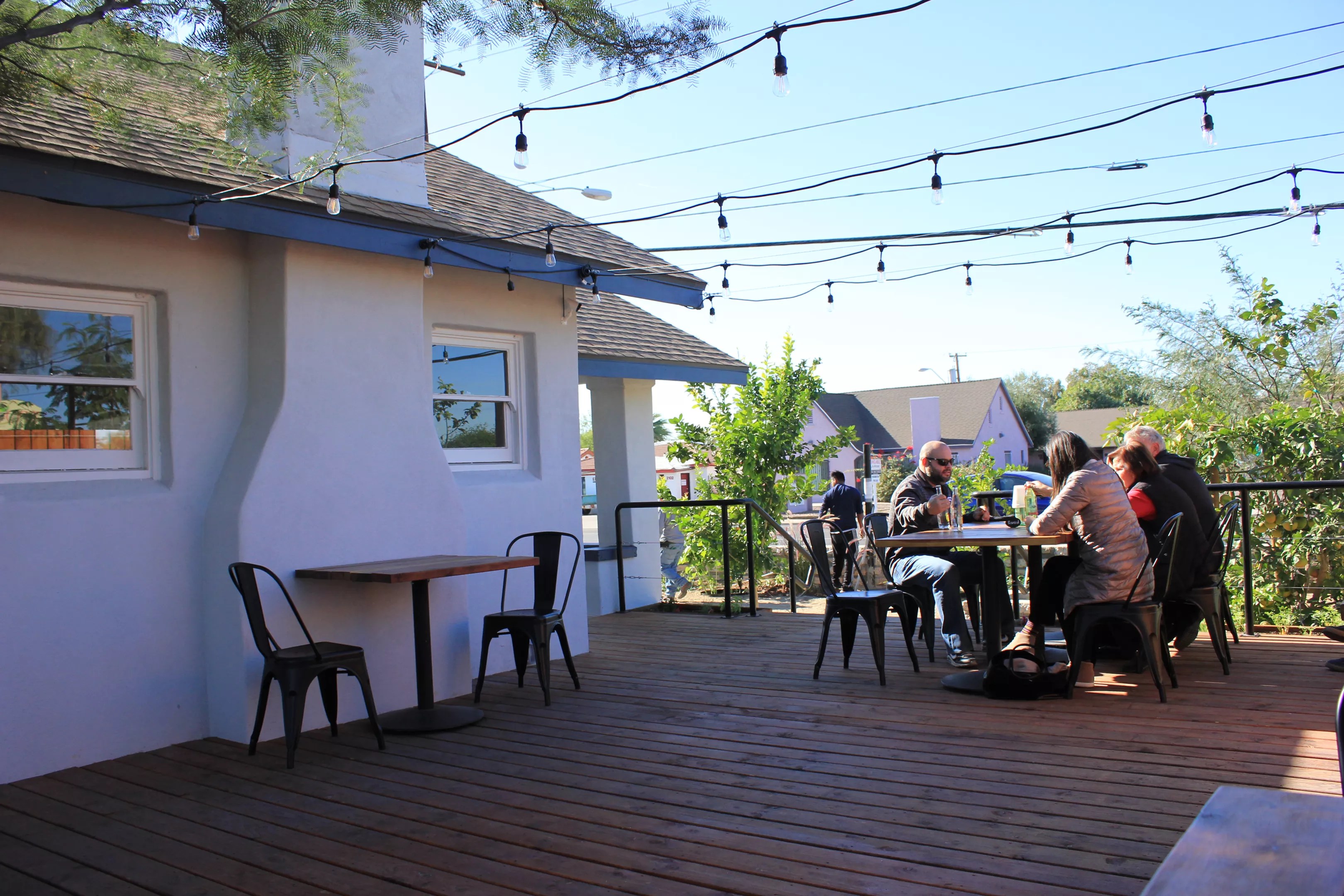 When you go, eat outside the restored 1920s bungalow housing the restaurant. The porch is spacious. It faces 24th Street and buzzes under string lights. Bassy quasi-electronic music flows, basking the porch in a thin party vibe even in the cold.
