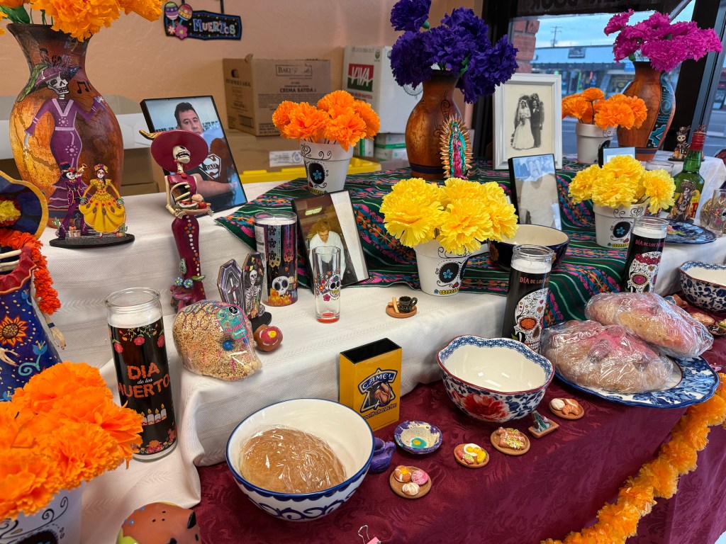 At their three locations, La Purísima sets up collaborative altars for Día de los Muertos. Employees are invited to bring photos of their departed loved ones, and customers also contribute by adding flowers, candles and pictures of their relatives or comedians and actors they loved.
