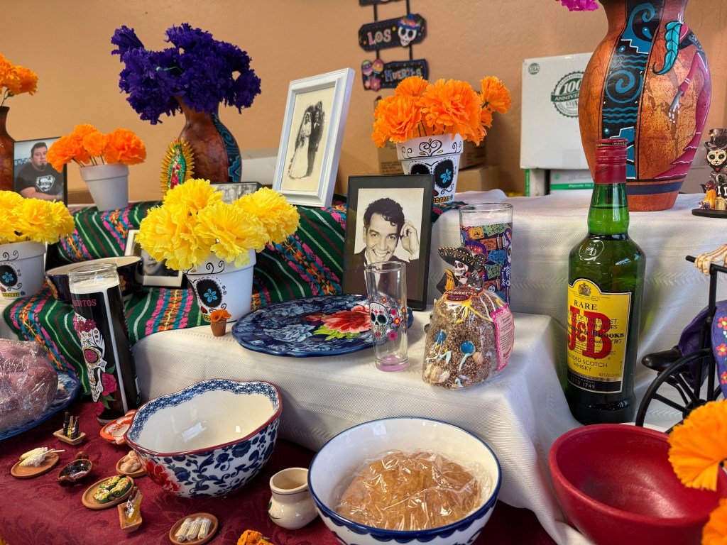 The community-built altar becomes a shared space of remembrance and celebration, staying on display for a week after Día de los Muertos.