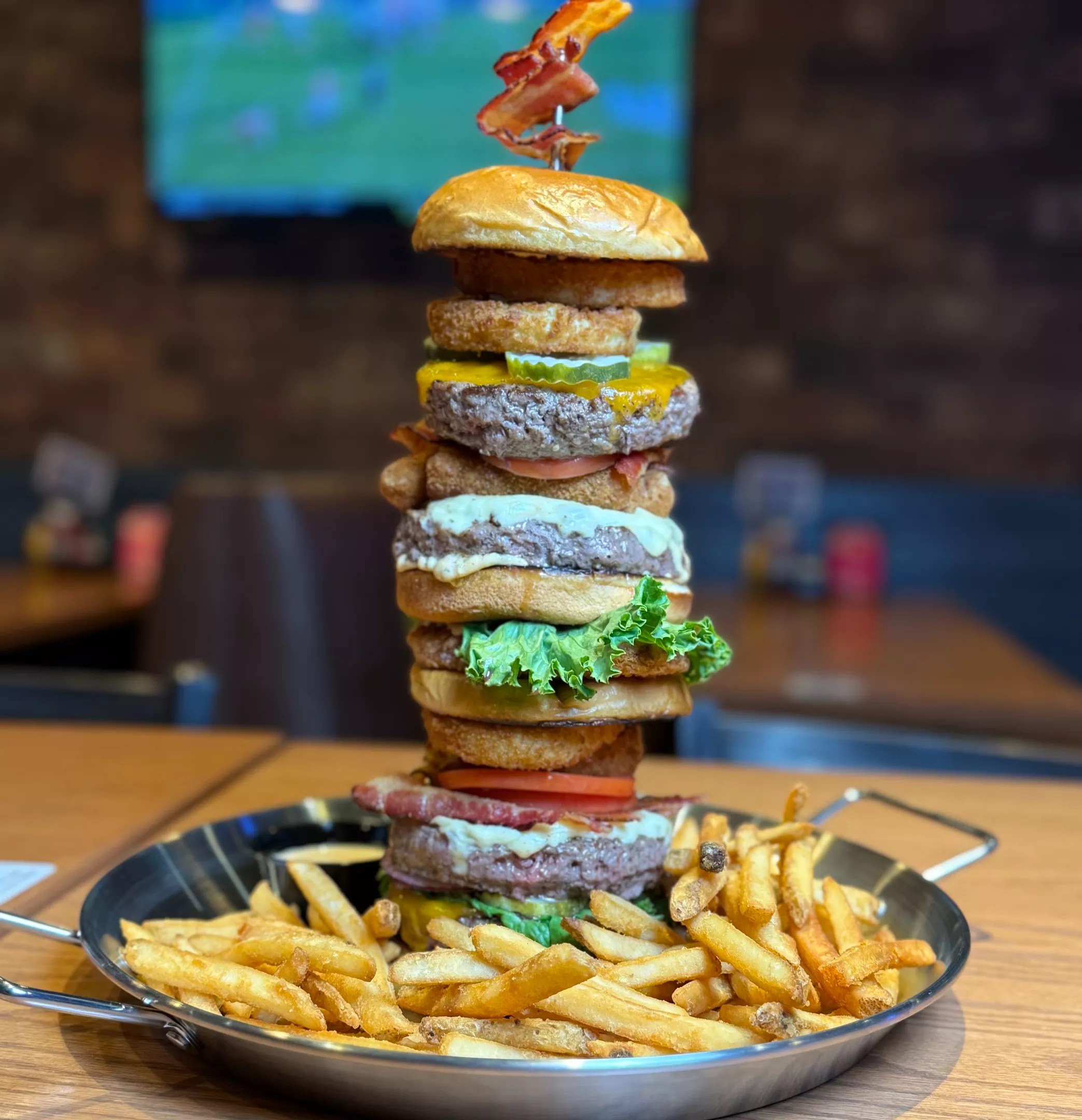 Multiple locationsCold Beers & Cheeseburgers has long been a destination for watching sports. This year, CBCB has teamed up with ASU quarterback Sam Leavitt and wide receiver Jordyn Tyson on dishes that will benefit Phoenix Children’s. Starting Saturday, diners can order the QB10 Wrap, a buffalo chicken wrap with romaine, tomato, ranch, shredded cheese and your choice of grilled or Nashville hot chicken, or Tyson’s Touchdown Sandwich, topped with chicken tenders tossed in sweet chili sauce, lettuce, tomato and a honey mustard spread. These specials are available all season at all Valley locations except Chase Field, and 10% of the sales of these specials will go to the children’s hospital. Assemble your squad to take on the oversized game-day food at Lakeside Bar & Grill. The Gridiron Monster Burger feeds four. Lakeside Bar & Grill