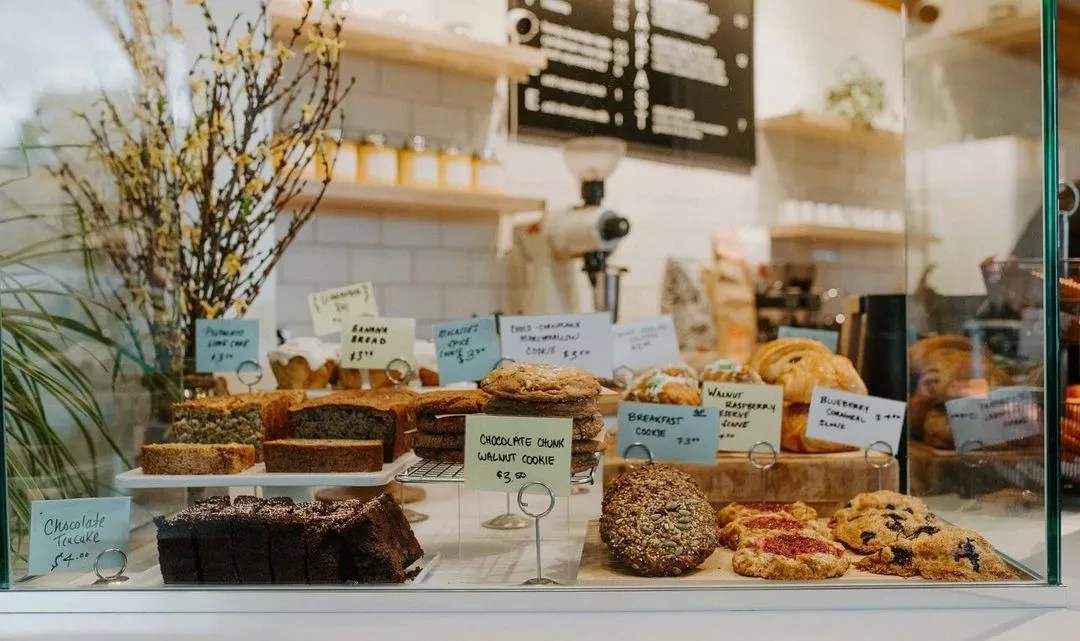 Inspired by Mexican flavors and Chicano culture, Tres Leches Café is a “go big or go home” kind of place, not unlike owner ET Rivera’s grande personality. Lattes come large and in bold flavors like Mexican mocha, horchata, and churro, spiked with the signature house tres leches crema and topped with mountains of whipped cream and extra drizzle upon request. The pane case is stocked with mammoth Mexican treats, like Fruity Pebble donchas, heart-shaped conchas and sprinkle-topped galettas. Make sure to get a selfie against the “Girls just wanna have pan” pink wall.
