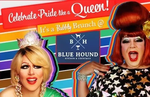 Party with drag queens Barbra Seville and Robin Banks at Blue Hound’s Drag Brunch on Saturday, June 25.