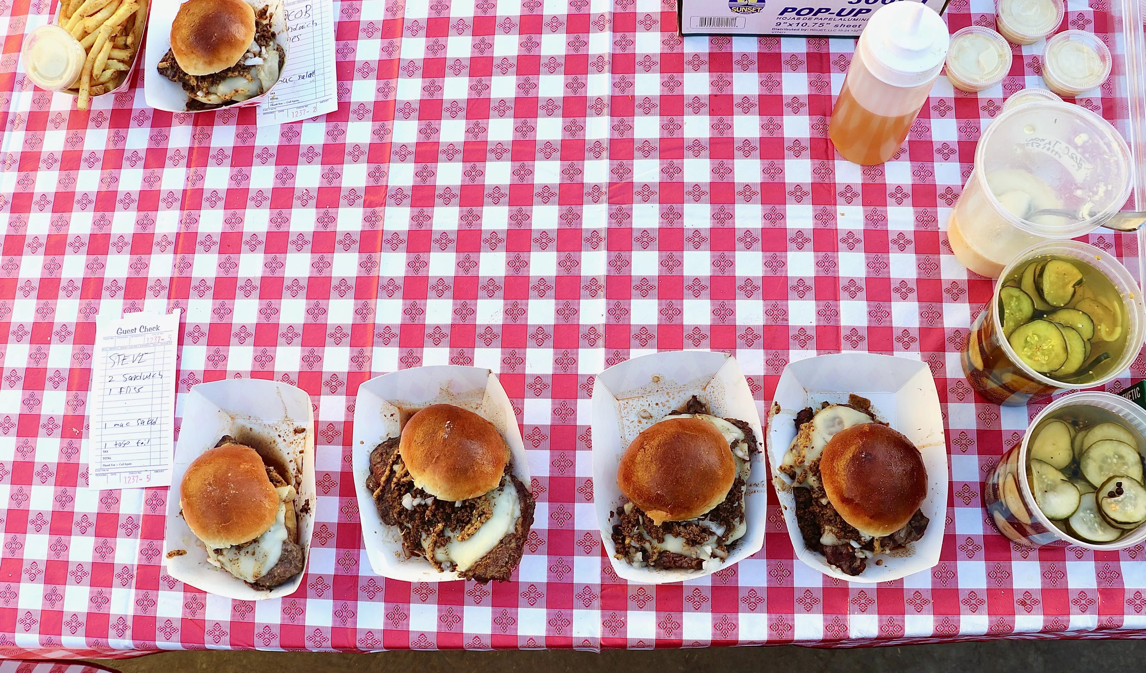 The smell might as well be a megaphone announcement for Bad Jimmy’s, a popup started earlier this year by James Piazza, a 32-year-old former chef at Pizzeria Bianco and a current chef at Valentine. Soon, a line coils from a makeshift table, where a woman in a white tank top is taking orders. The burgers – made with Piazza’s own blend of grass-fed brisket and grass-fed beef (both from local Rovey Farms) and topped with American cheese, “Jimmy’s pickles,” onions alchemized in beef grease, and a “not-so-special” special sauce – are prepared by three men in overalls and hats, who scrape, clack, and place row after row of pink patties on a hot griddle. The outfits and cheeseburgers, floats, and strategically parked vintage cars kindle a throwback ’70s vibe.