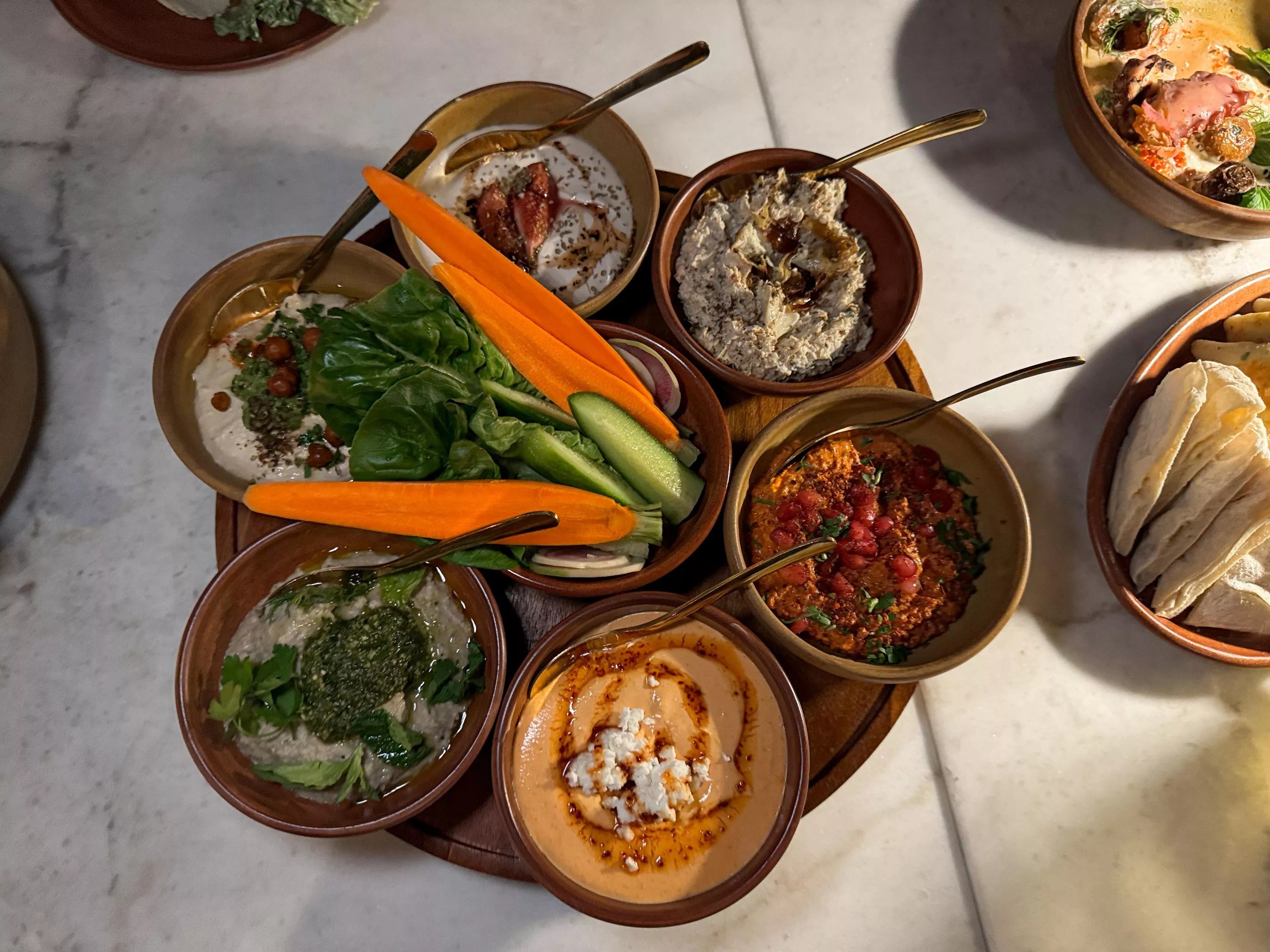 My dining companions agree that it’s a fun spread to pick at with bread and crudites, but when I ask which of the six they look forward to ordering on its own, the table goes silent. Like a cheap buffet, once the wide-eyed appeal of variety and excess is stripped away, the dish that remains tastes better at my corner gyro shop.