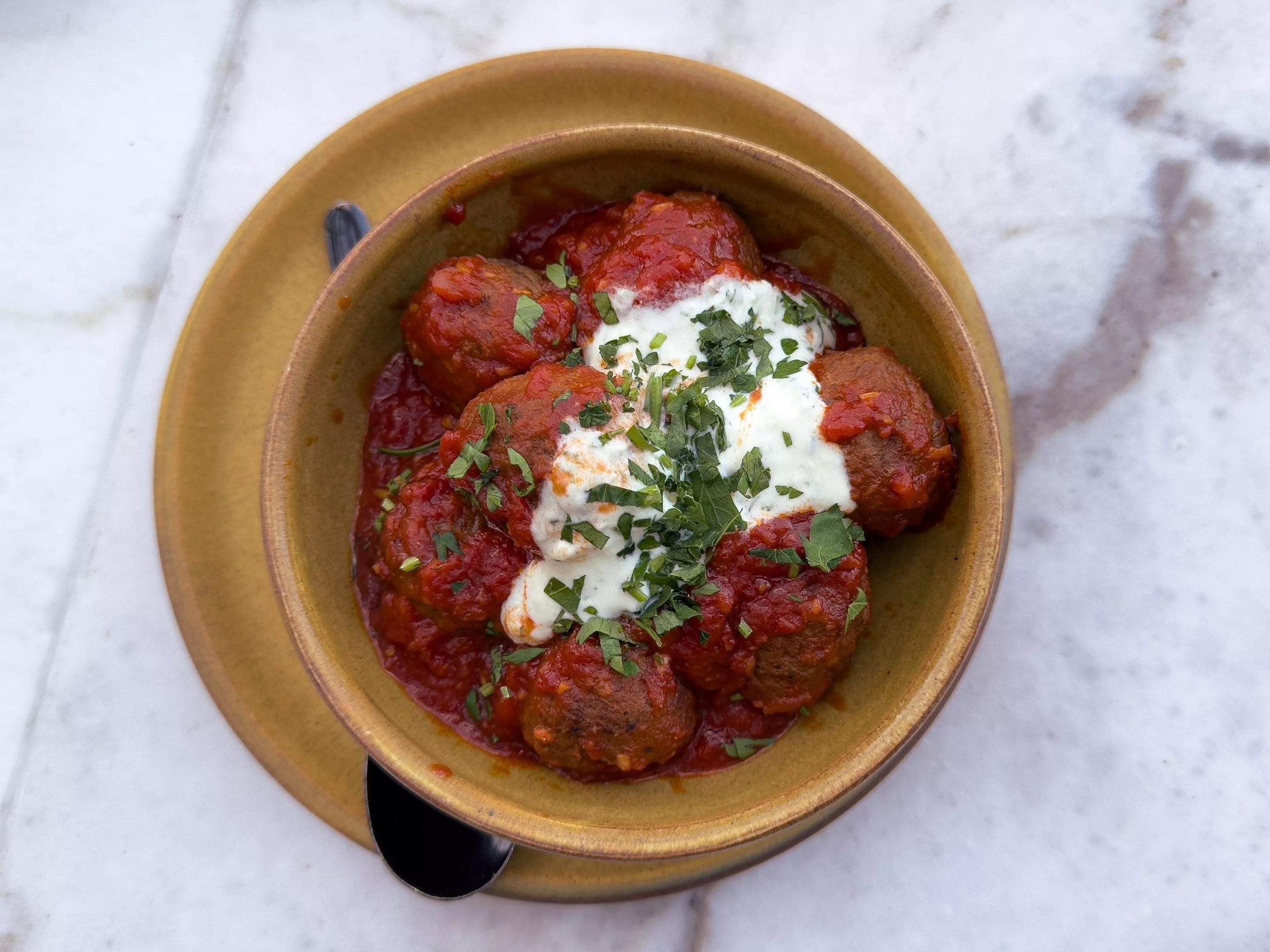 Turkish meatballs are nicely seasoned, but buried in dull sauces.