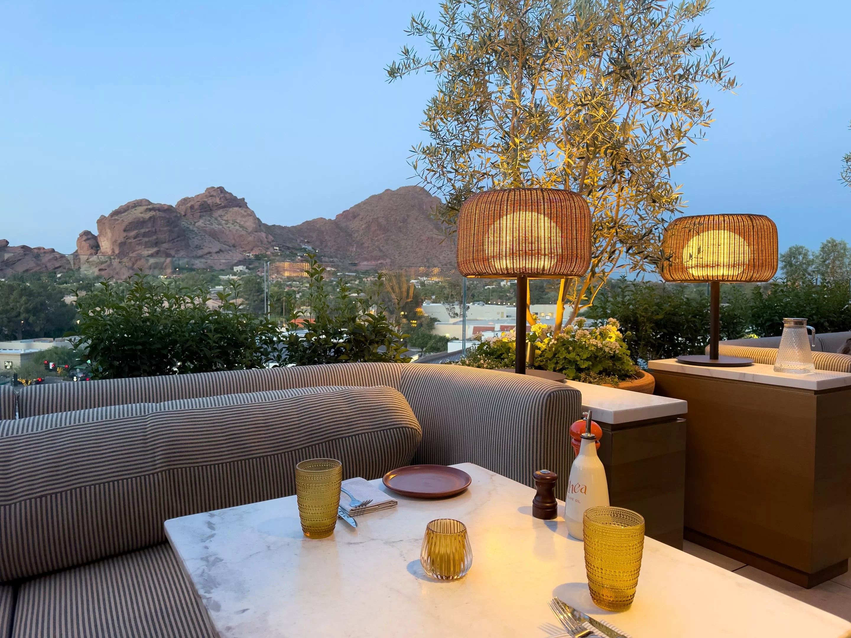 It’s a vibe up there, as the kids say, where the well-heeled wildlife sips spritzes and skinny margaritas and gazes down upon the Valley, lounging on giant puffy sofas and wiggling to a disco funk remix of “Rock the Casbah” in a scene that would probably kill Joe Strummer if he weren’t already dead.