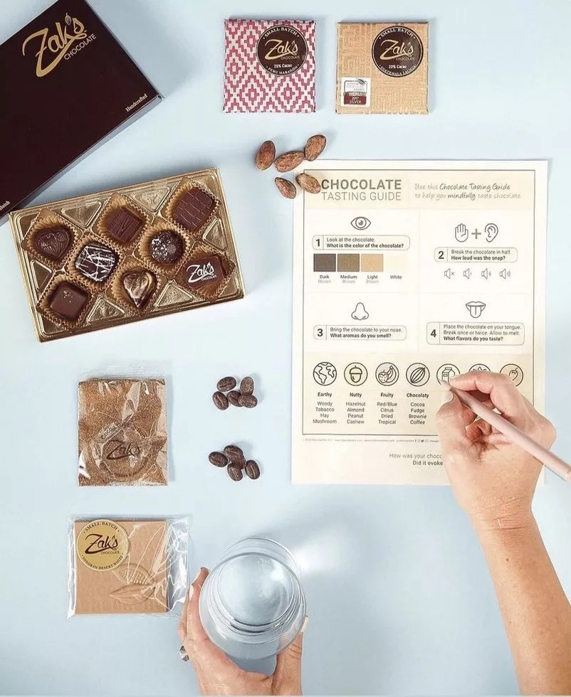 It may feel intimidating to trust the tastebuds to get all the flavors, but chocolate sommeliers say there is no wrong way to taste chocolate. You taste and smell the memories of foods you grew up with. Just let the chocolate come to room temperature and be present.