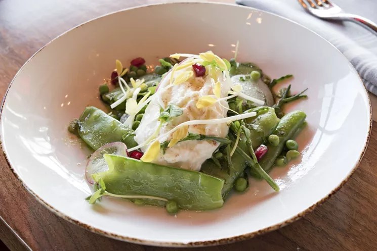 Burrata and pea salad from Mora Italian.