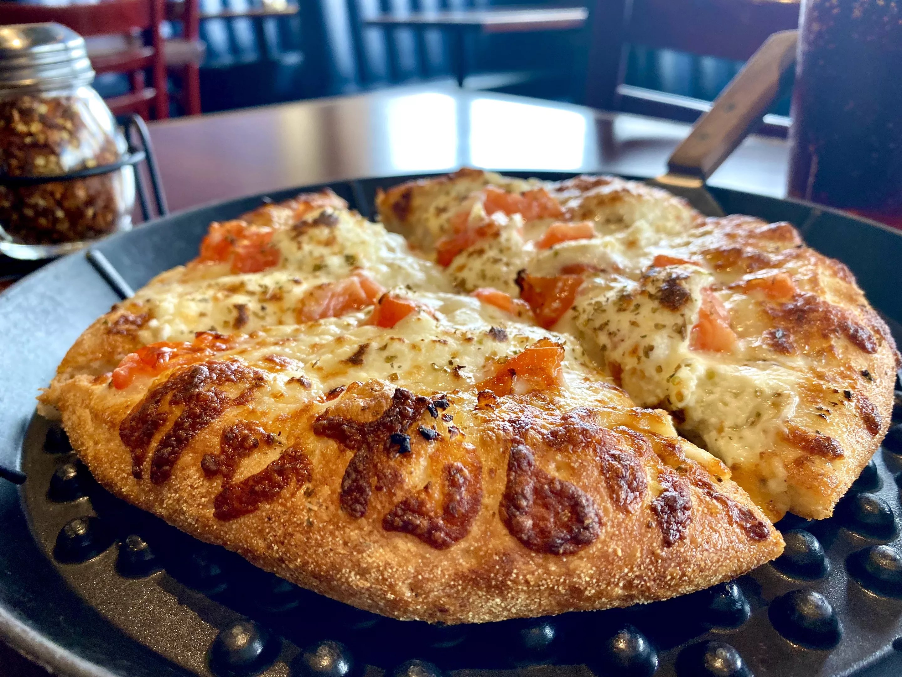 It makes sense that Barro’s white pizza feels comforting, like a hug from grandma. The dough comes from grandmother Angelina Barro’s secret family recipe by way of Italy and Chicago. The pillowy, billowy crust is both thick and flakey at the same time. It’s topped with not one, but three, cheeses (mozzarella, parmesan, and dollops of ricotta), plus white sauce, garlic, oil, and tomatoes, for an ooey, gooey, verging-on-deep-dish feast from a local chain that’s still family-owned.