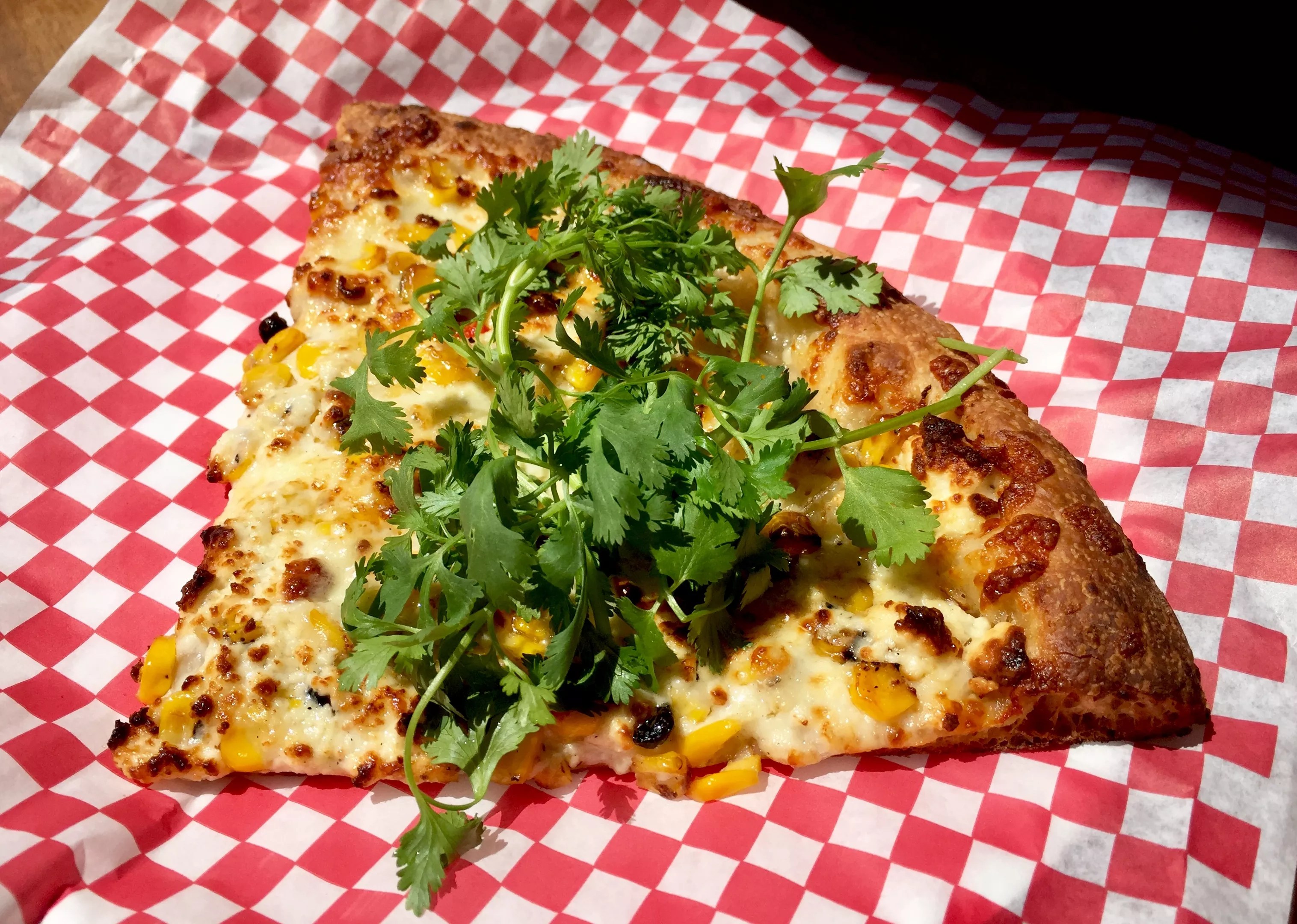 Tammie Coe is famous for her cookies, cakes, and cupcakes, and that baker’s mentality served her well when perfecting her pizza dough at Hot Daisy, her slice shop on Roosevelt. It is a time-consuming process that starts with the right ingredients, then calls on passion and relentless pursuit to get just the right light-and-crispy finish. And yes, practically anything would be tasty on top, but the Corny Baby-Elote Pie layers garlic cream sauce, mozzarella, crumbly cotija, and roasted corn, with a drizzle of chipotle oil and a garnish of fresh cilantro. It’s a texture party that brings a zing of herby, zesty, crunchy, salty, and sweet. Whole pies are available.