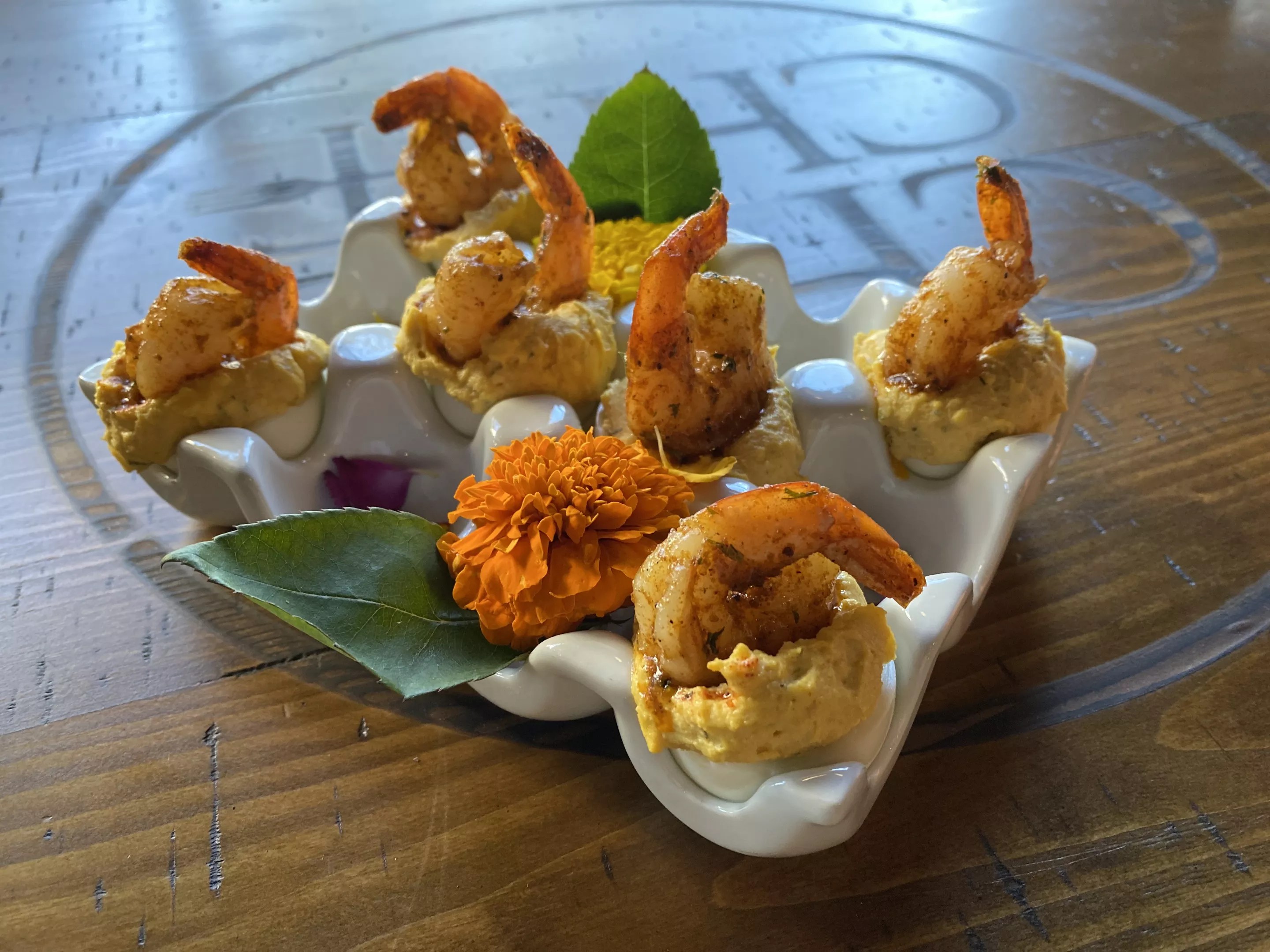 1212 E. Apache Blvd. The La Di-Da-Dis, deviled eggs topped with grilled Cajun shrimp, are a customer favorite, Fields says. Natasha Yee