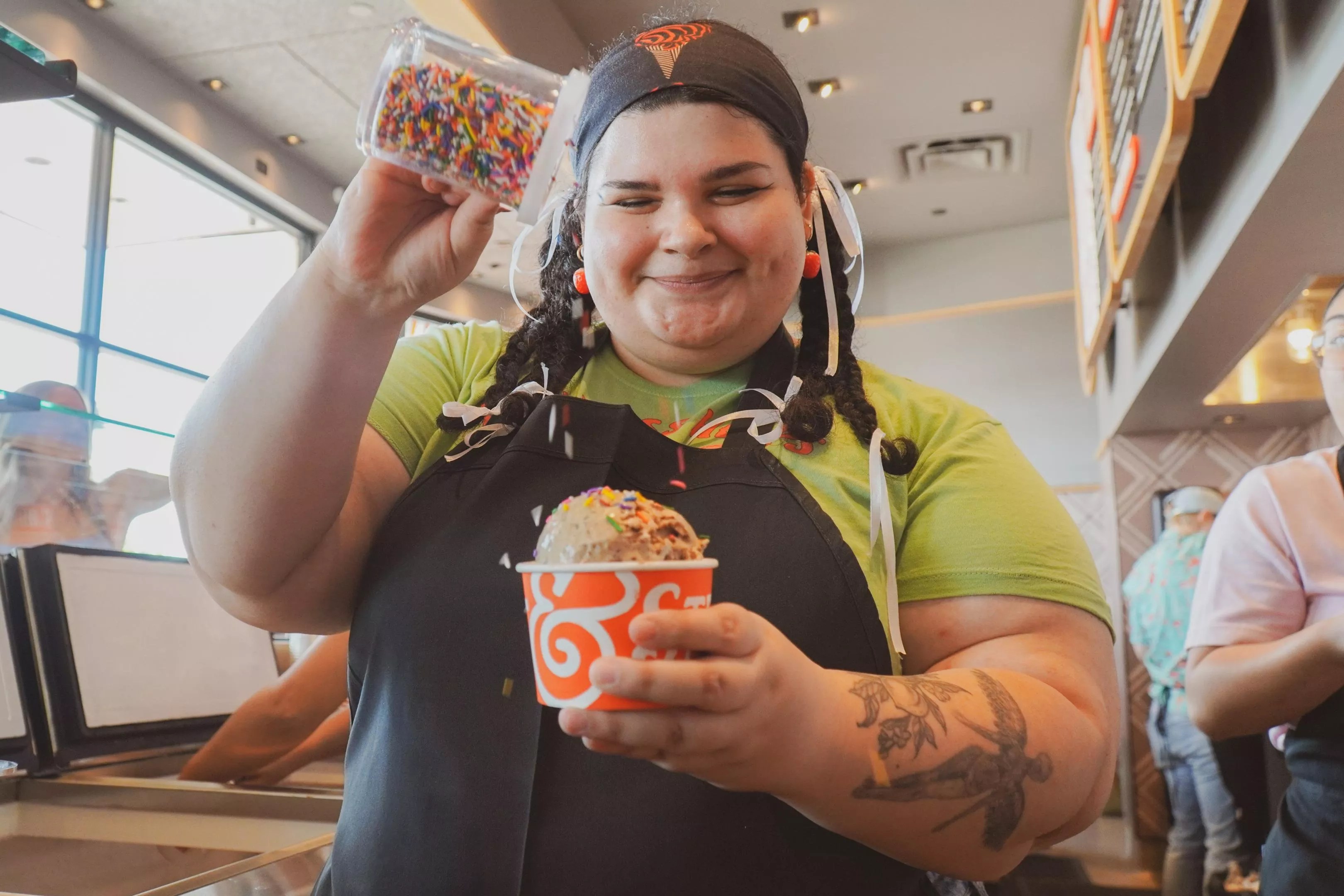 Salt & Straw’s scoopers will add rainbow sprinkles to your order, you just have to ask. Whipped cream is also an add-on option.
