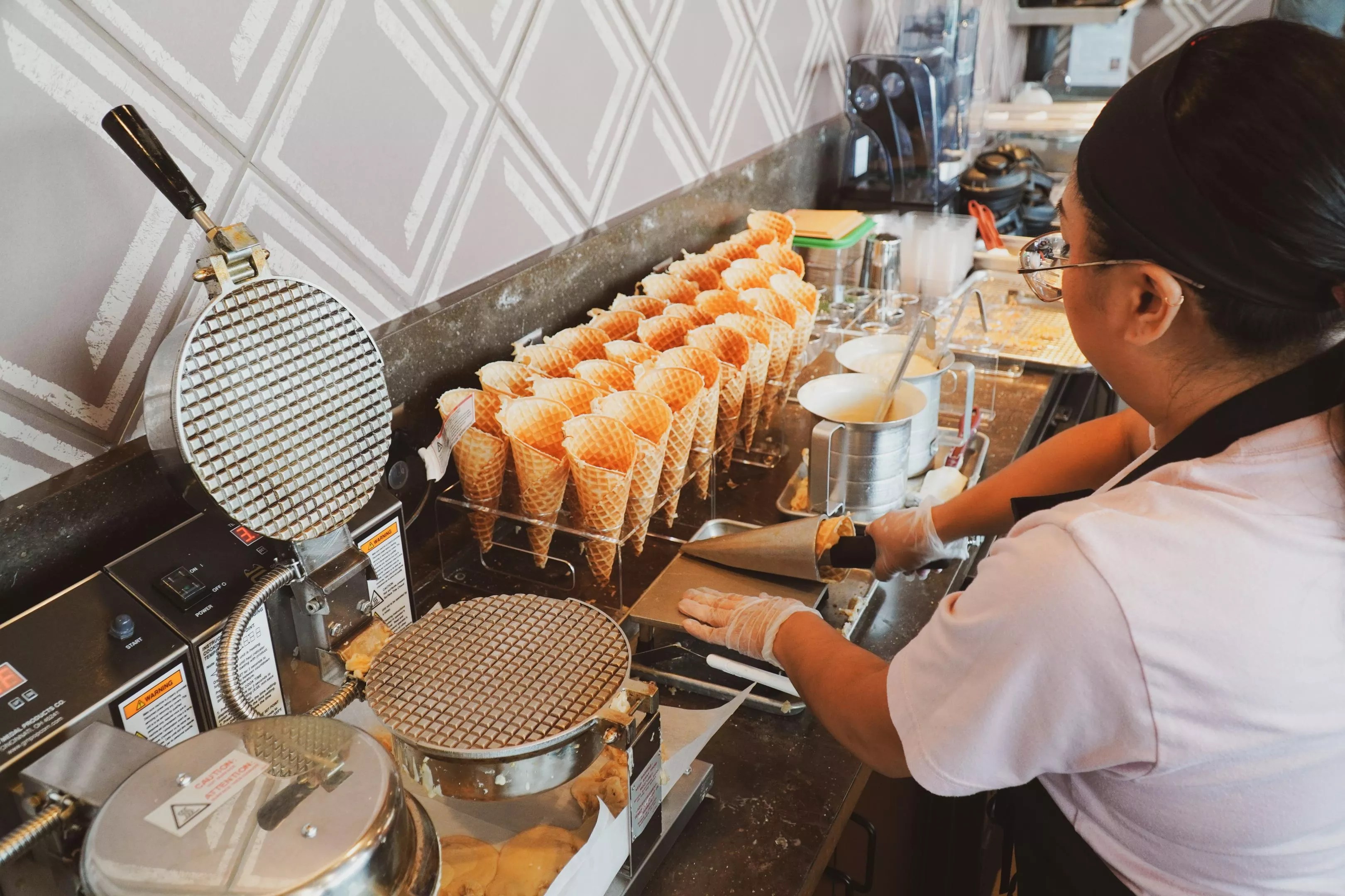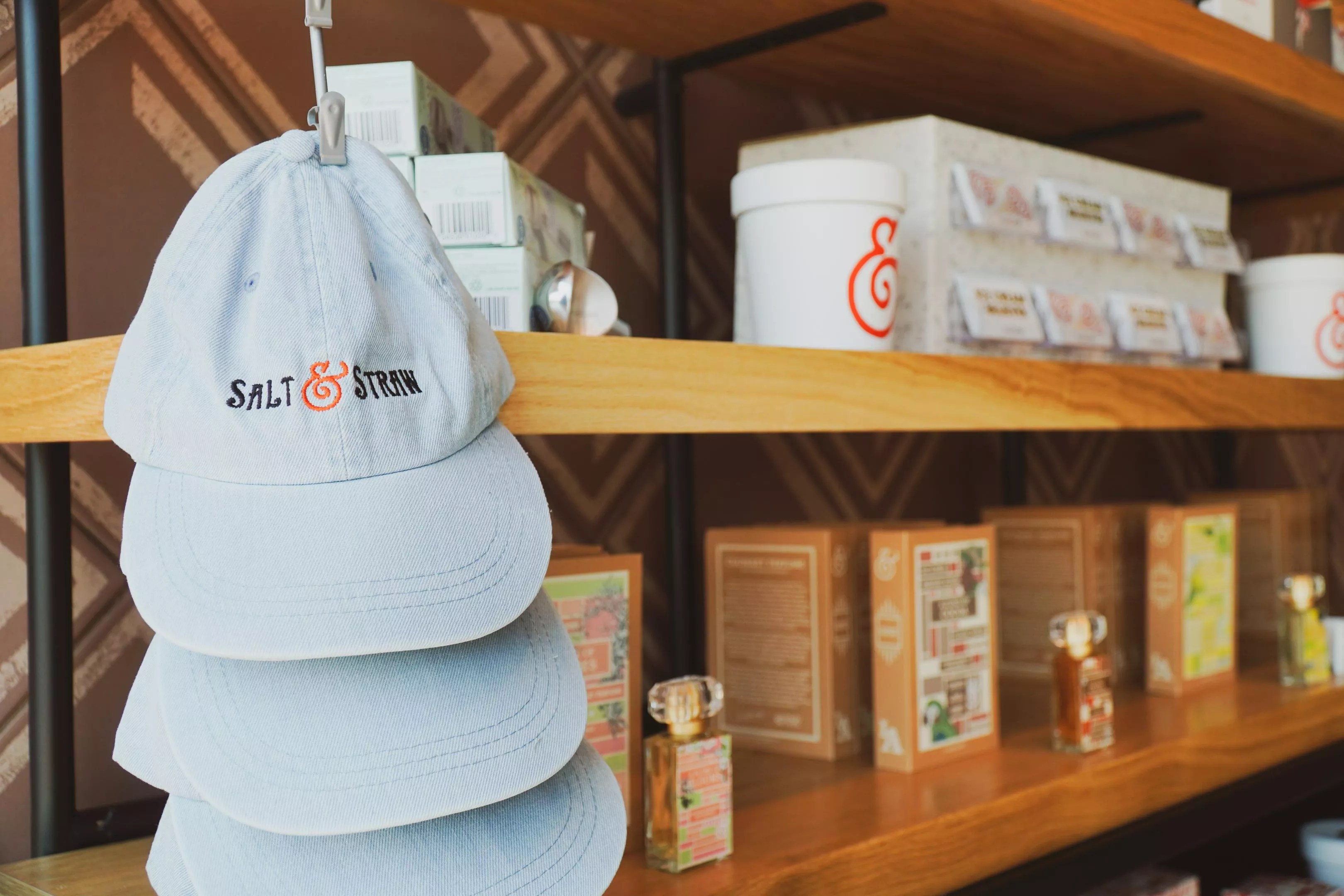 In addition to the scoops, the shop has merch like branded hats, Salt & Straw cookbooks, waffle cone-scented candles and culinary “perfumes” to spritz on your ice cream.