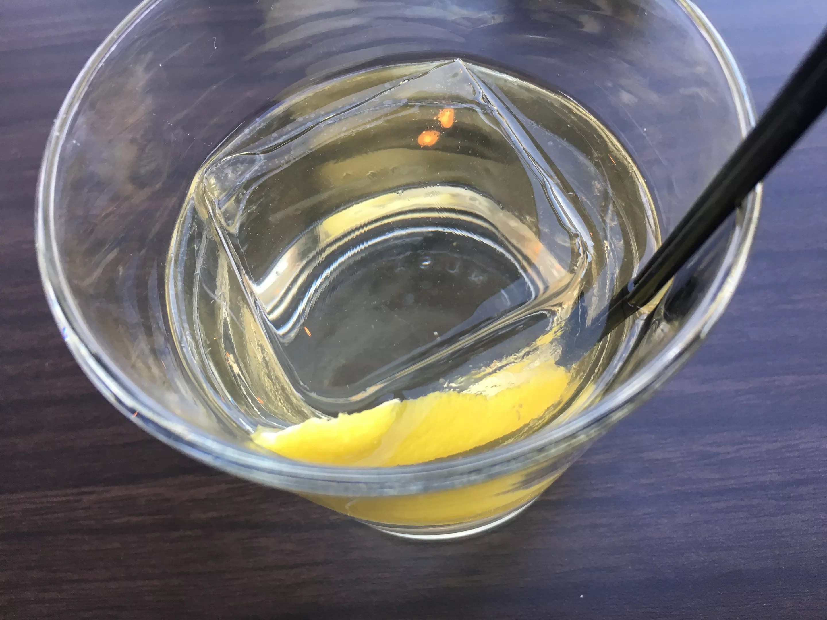 Bianco negroni, clear as water and made with apple-cinnamon-infused vodka.
