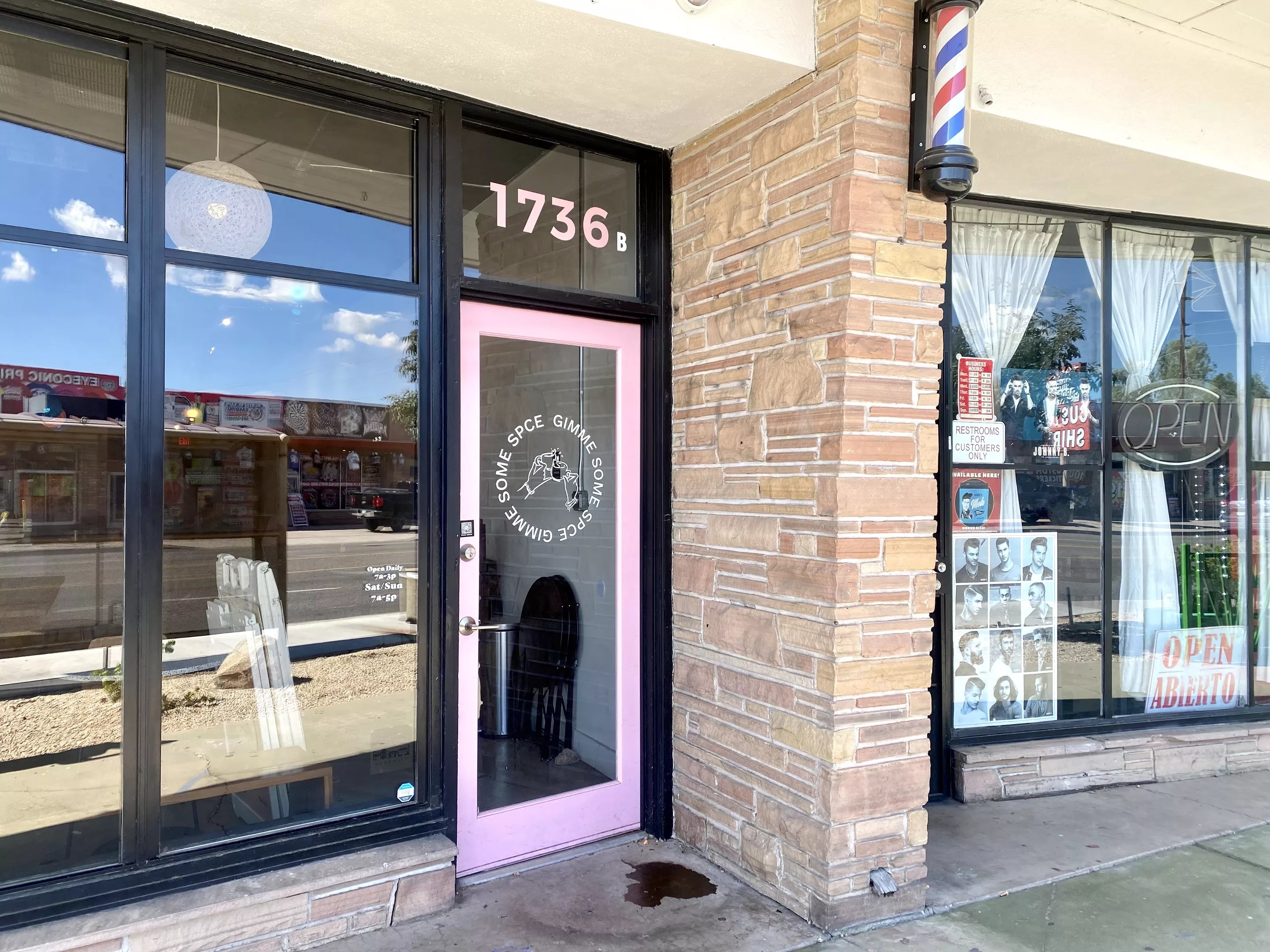 Spce Coffee’s pink door welcomes customers on McDowell Road.