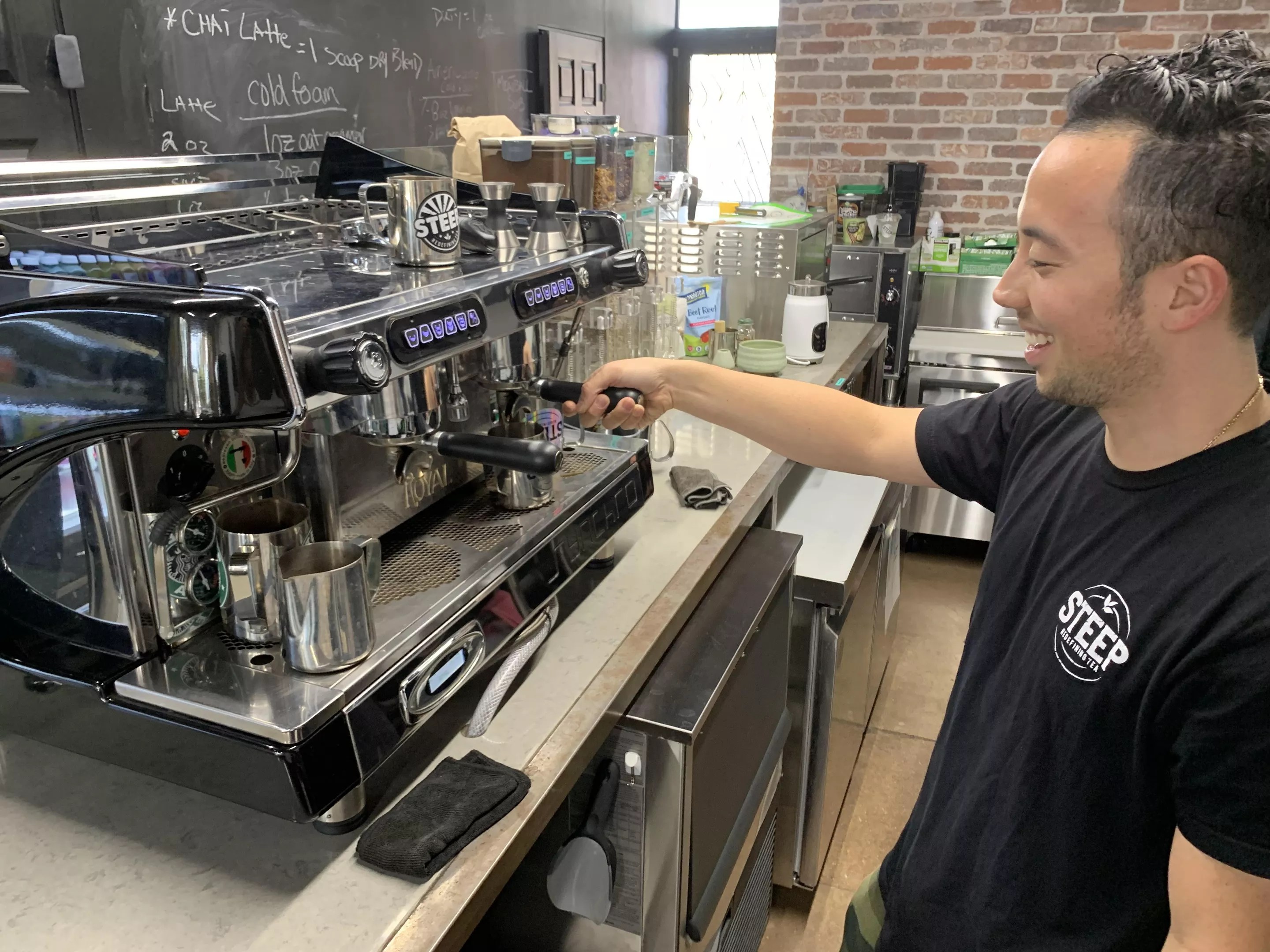Robinson says that even though many Americans are relatively unfamiliar with loose-leaf tea, most people can connect with the familiarity of an espresso machine.