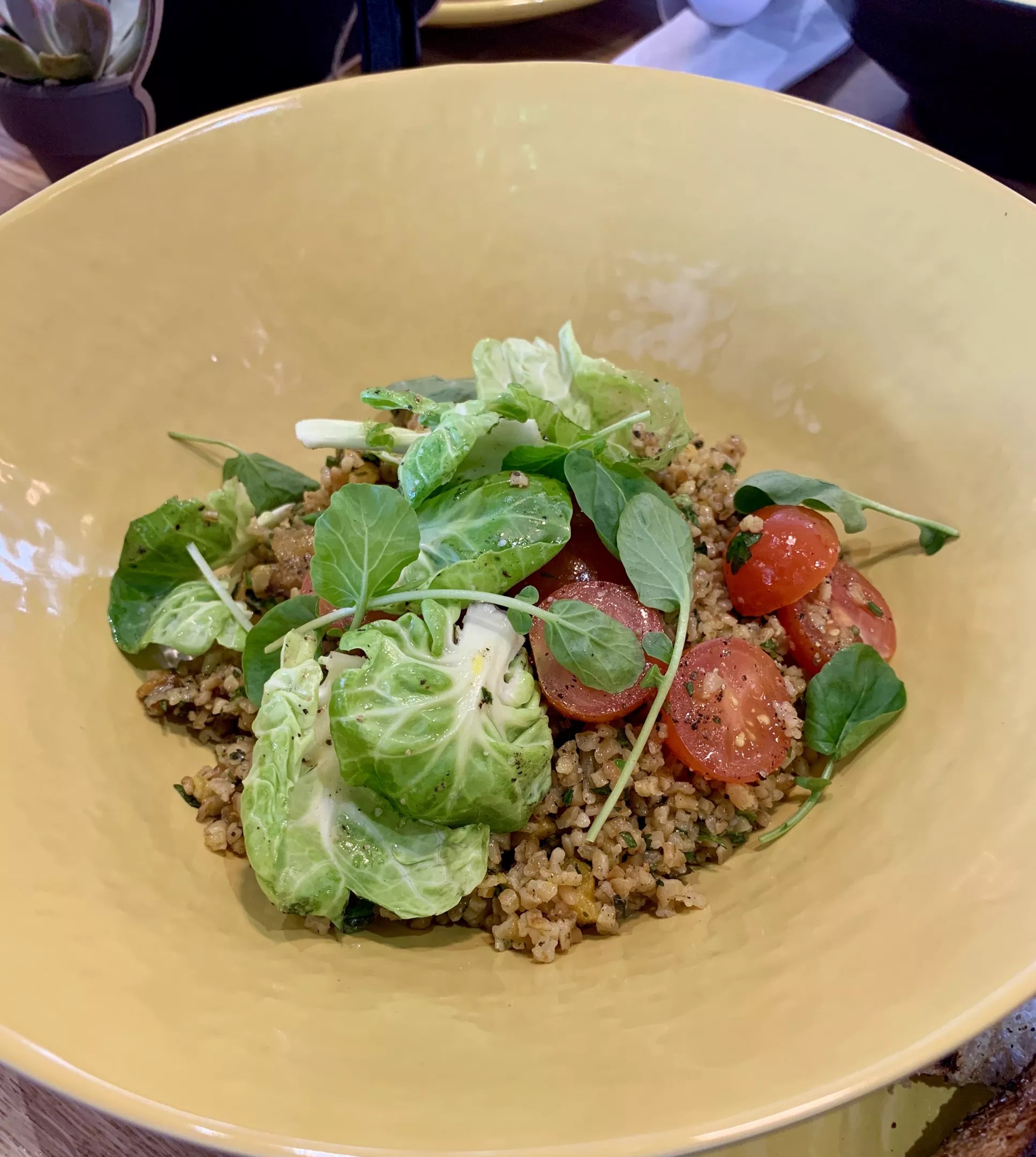 Soon, yellow dishes arrived filled with generous portions of the Moroccan and Terra – two bowls from the grains section of the menu.