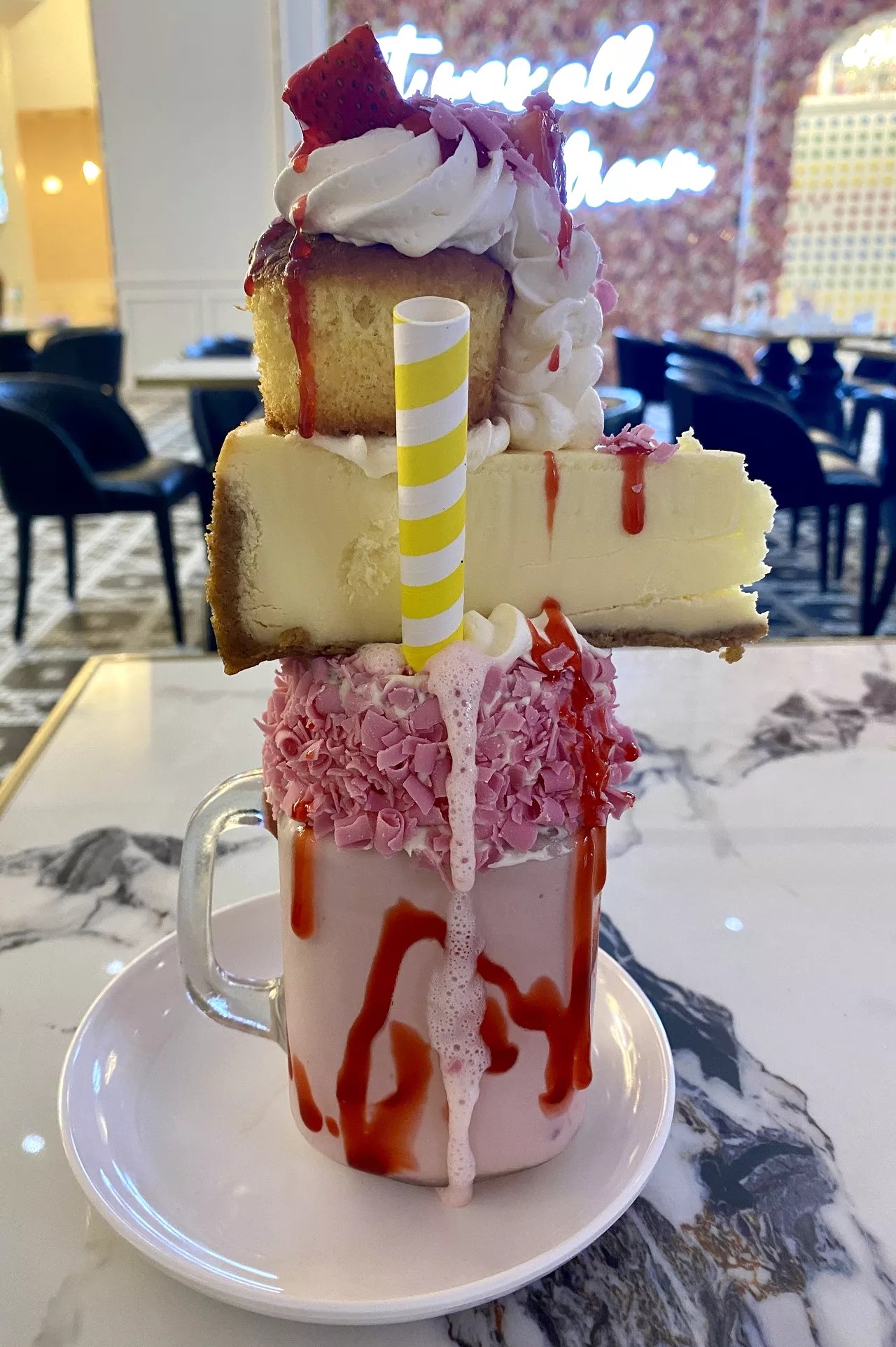 Sugar Factory is known for its over-the-top milkshakes, but the Strawberry Cheesecake option was a letdown.