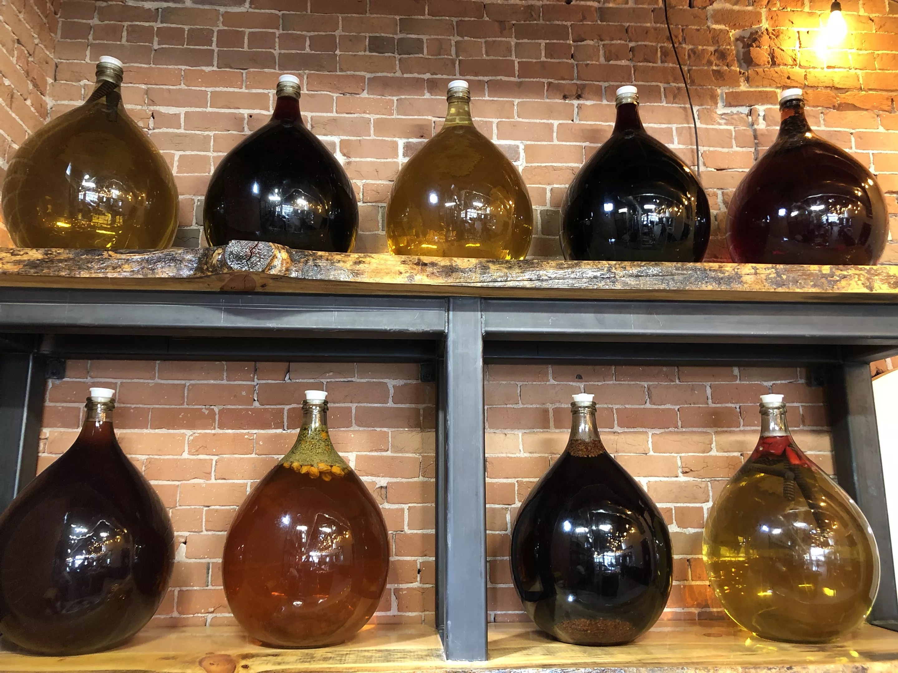 Mead fermenting in onsite demijohns at Superstition Downtown.
