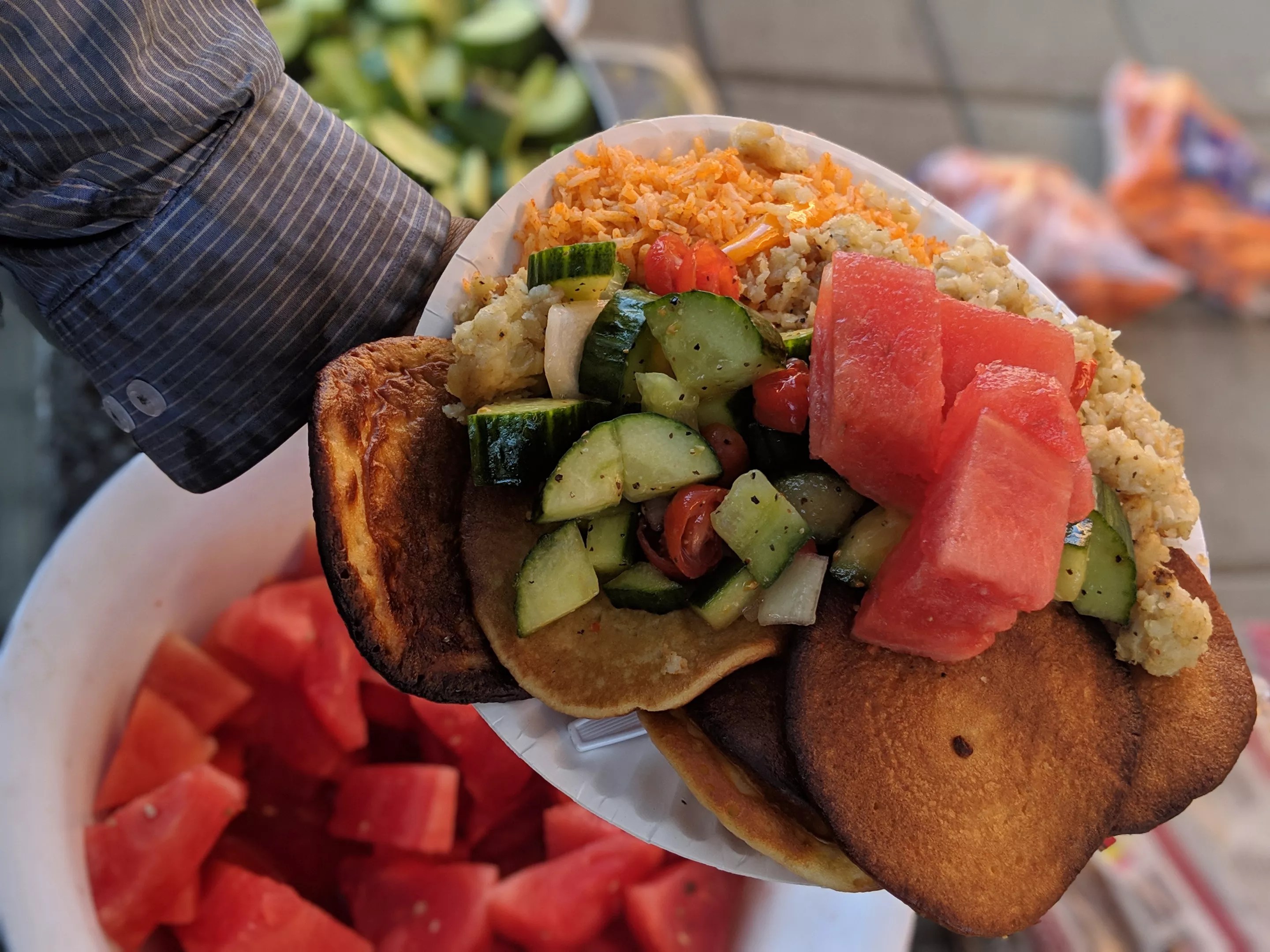 Pre-COVID, the group would meet at a place like Phoenix Hostel to prepare food in the kitchen space early Sunday afternoon. Then they would head down to Civic Space Park to start sharing meals by 6 p.m.