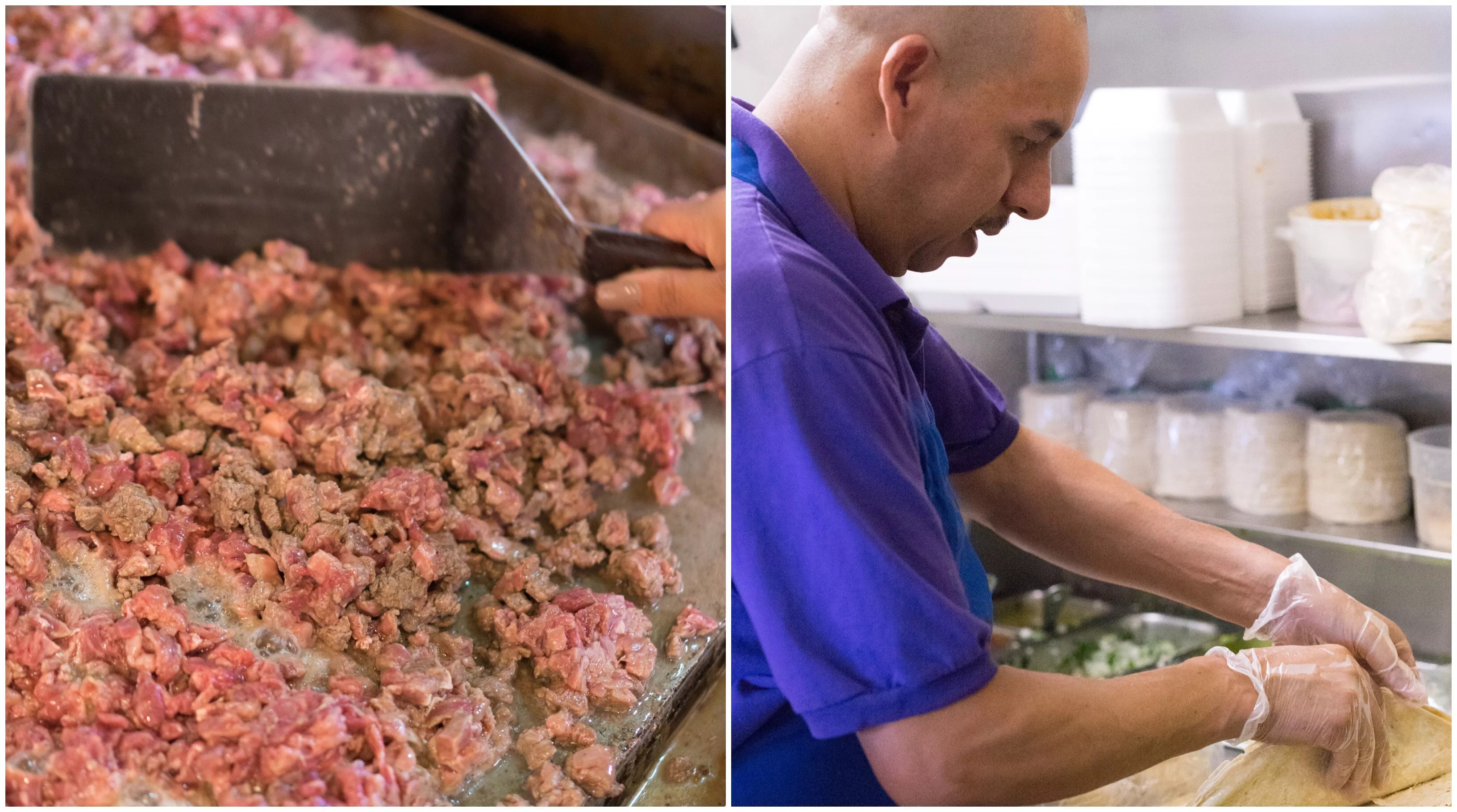 After the Reyes arrived, they made some adjustments to the burritos.