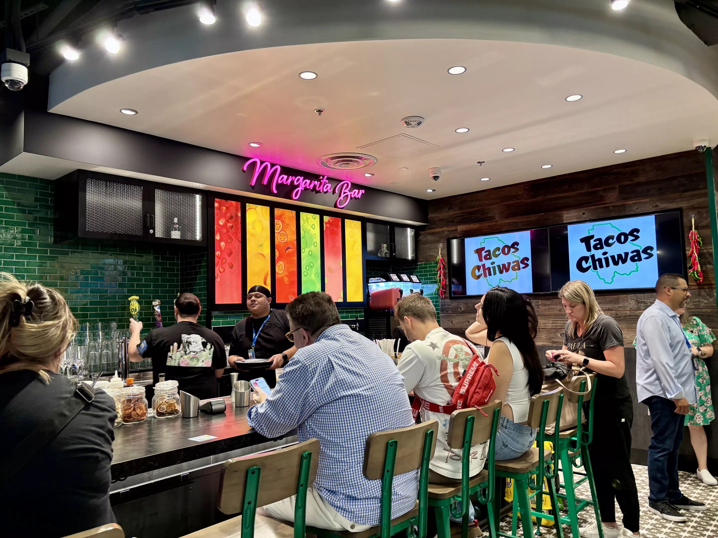 Travelers can take their tacos to go, grab a table in the small dining area or pick a seat at the margarita bar.