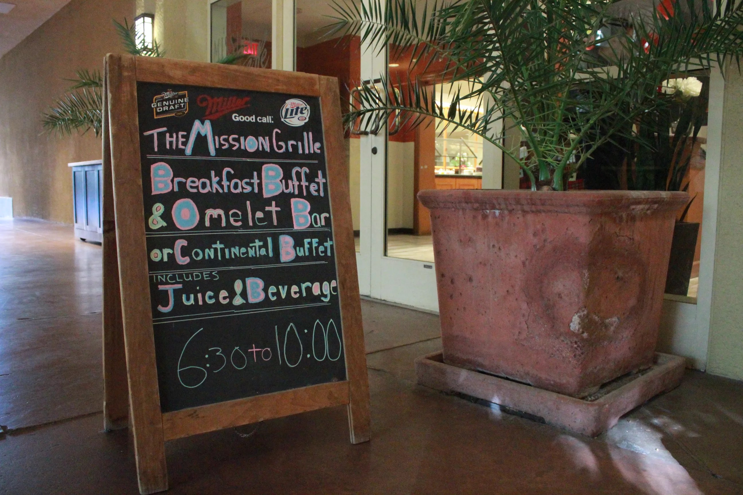 The Bottom Line: You wouldn’t really think to enjoy breakfast at a hotel unless you stayed there. However, a walk through Tempe Mission Palms’ buffet line will leave you considering continental breakfasts regularly. From the hotel lobby, you wouldn’t stumble upon the Mission Grille. The hotel restaurant is tucked away in the northwest corner of the quiet, Spanish-styled courtyard. To find this buffet gem, head through the entrance of Tempe Mission Palms and continue walking straight through the second set of doors. This will take you to that citrus-filled courtyard, where Mission Grille is located to the left of the fountain. With beautiful outdoor seating and plentiful options, this hotel breakfast is tough to beat.