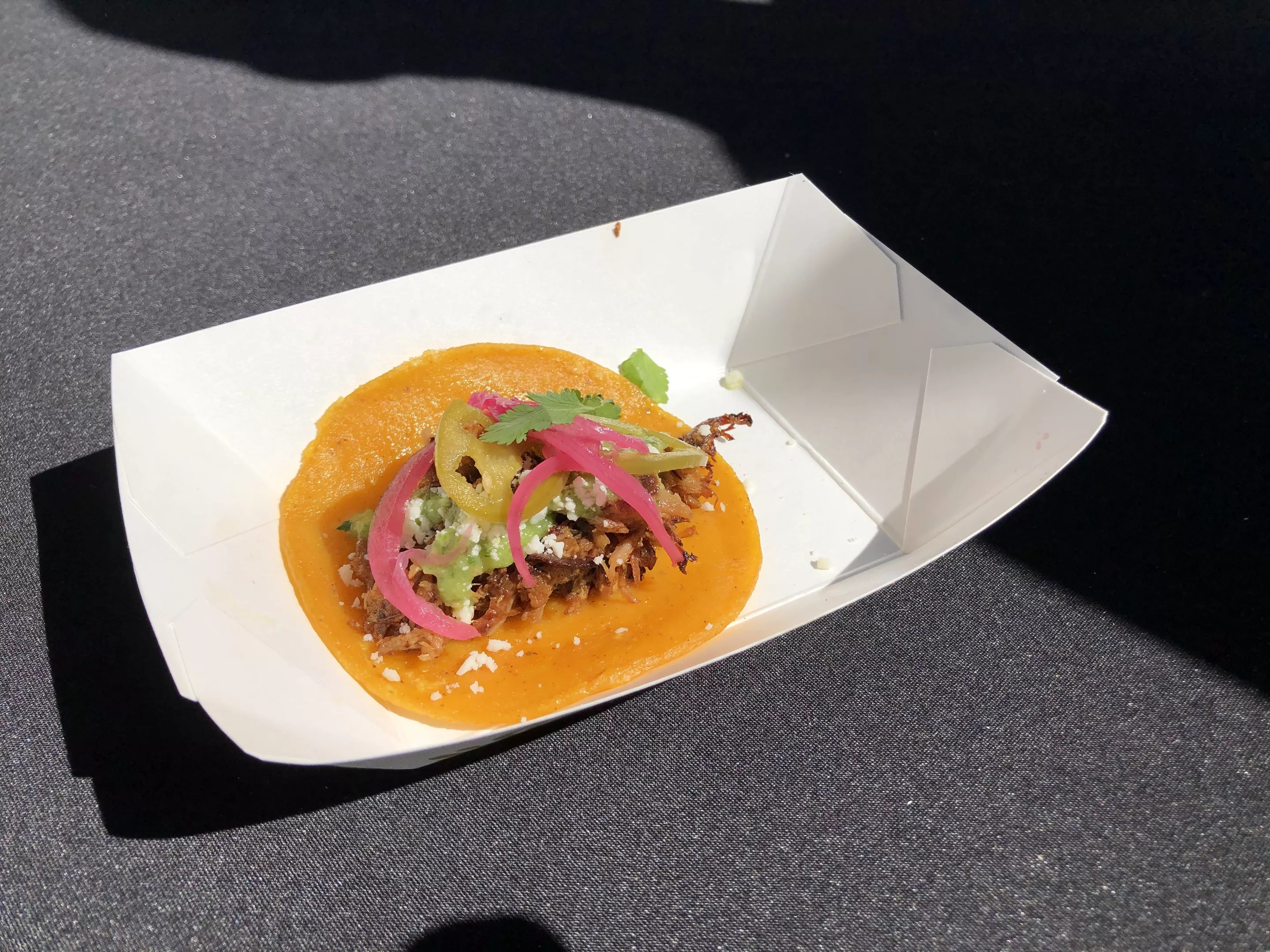 I question whether the festival should be blowing up the pop element of tacos like a balloon dog. Not once in three hours, 10-plus tacos, two trips to the tequila tent, several circuits of the rectangle, and many conversations with strangers did one single word about the cultural significance or history of tacos come up. There weren’t any spaces within the festival where you could read about foodways, regions, or styles; there was nowhere to learn about them from a speaker.