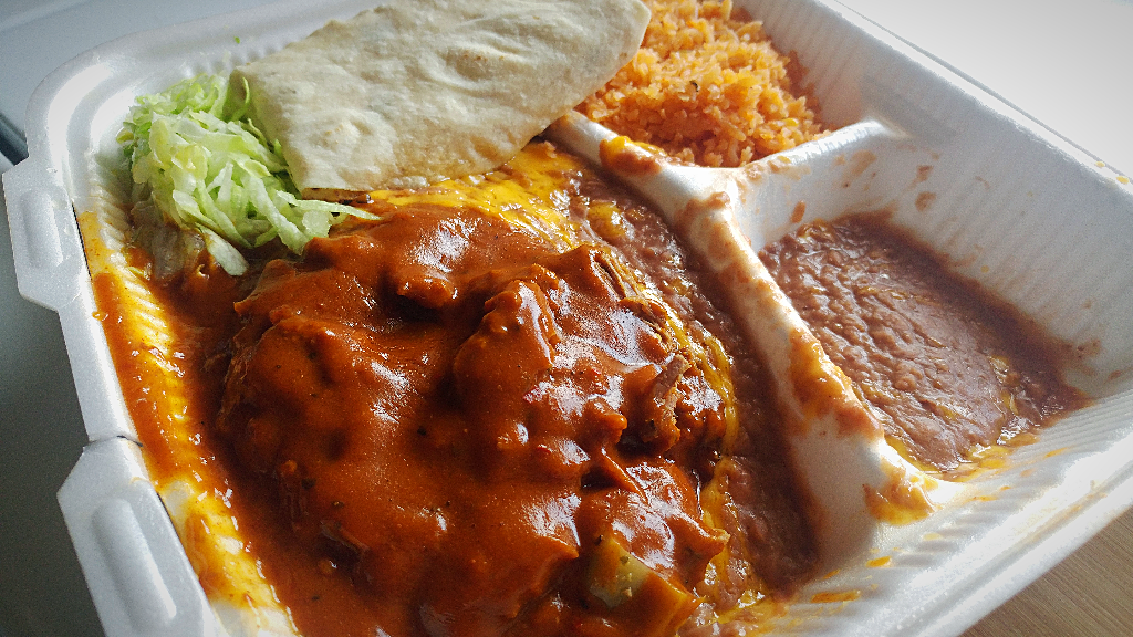 And yet, the people keep coming. There’s always a line. The parking lot is a hub of traffic at lunchtime. Maybe they come for the hot flour tortillas, stuffed into steamy plastic bags, big enough almost to substitute for a pillowcase, in a pinch. They are gloriously thin and stretchy, and you suspect that the magic of lard had something to do in their construction.
