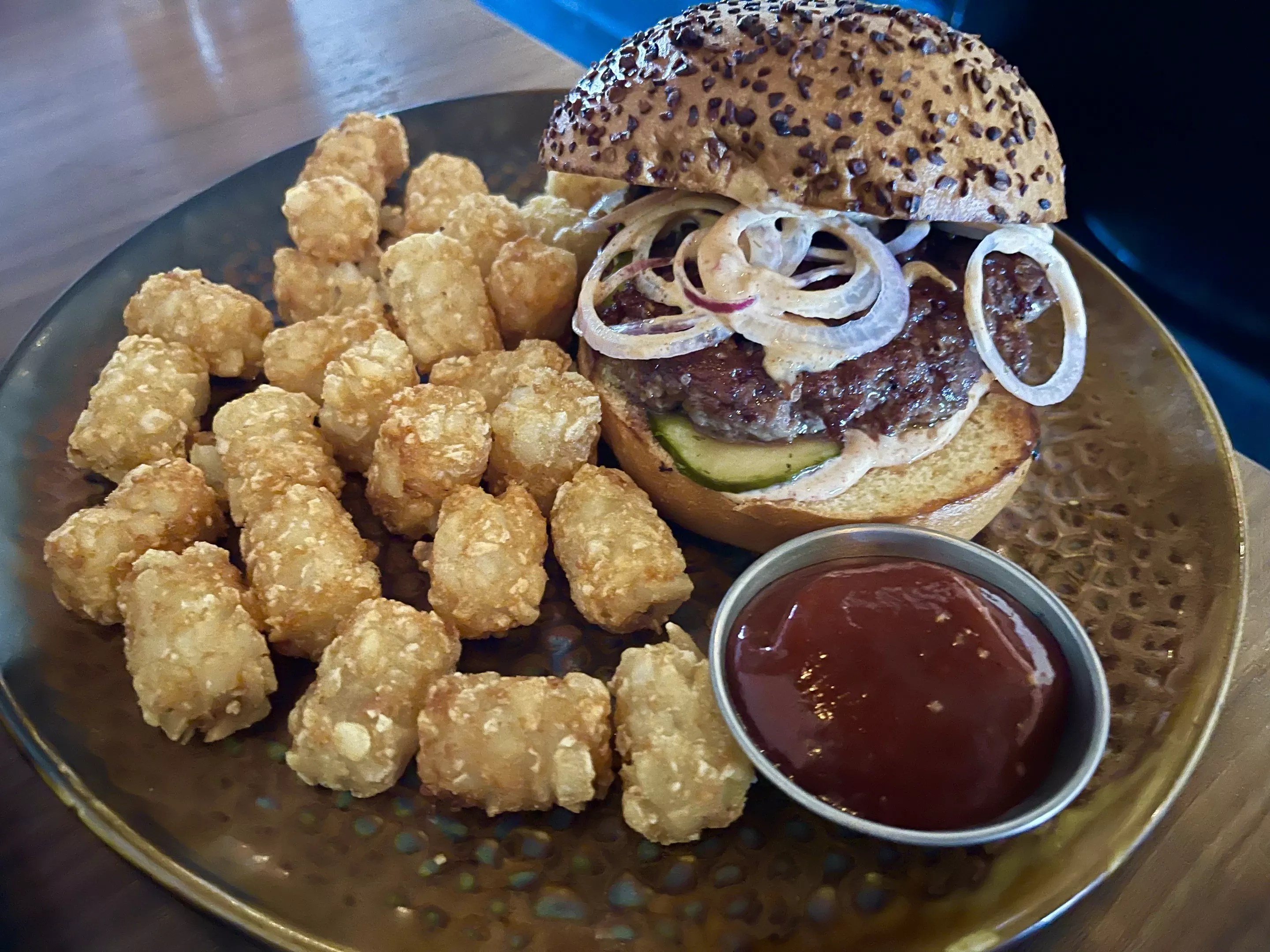 1534 E. Bethany Home Road It’s no secret that the burgers at Aftermath are exceptional. They’re a signature item at the Bethany Home Road restaurant. But the happy hour version, served from 4-6 p.m. on weekdays, is a steal for $15. It comes as a single burger, rather than the double patty version served during dinner. But the flavor of this extremely well-balanced burger shines through. A fluffy onion Kona bun from local baker Noble Bread is spread with burger sauce and stacked with vinegary homemade dill pickles, a thin-yet-juicy smashed patty made from an Arizona grass-fed and dry-aged beef blend, cheese and thinly sliced red onions. It’s the most elevated version of a super satisfying, craving-inducing burger you’ll find. Plus it comes with jalapeño tater tots. We’ll call that $15 well spent.