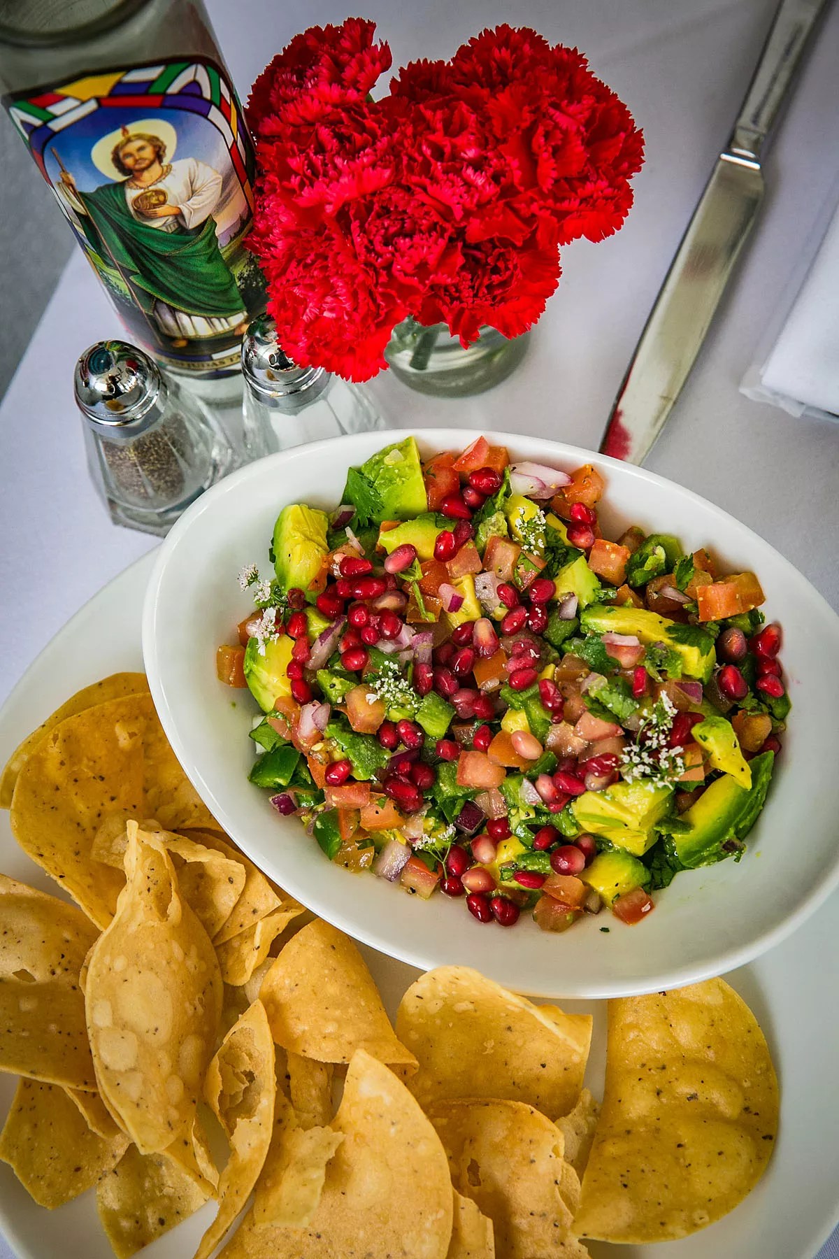 Consider a light entrée if you have a second course in mind, as the basket of thick, shiny, and lightly salted tortilla chips makes it a little too easy to revisit the bowl of fresh guacamole for yet another scoop. The Guacamole del Barrio is heavily textured. Large chunks of bright green avocado are blended with diced tomatoes, onion, jalapeño, and cilantro, and of course, generous sprinklings of pomegranate seeds.