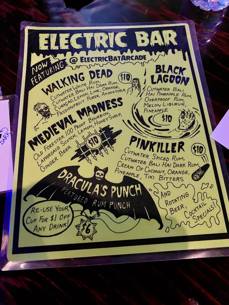 The Black Lagoon cocktail at Electric Bat Arcade.