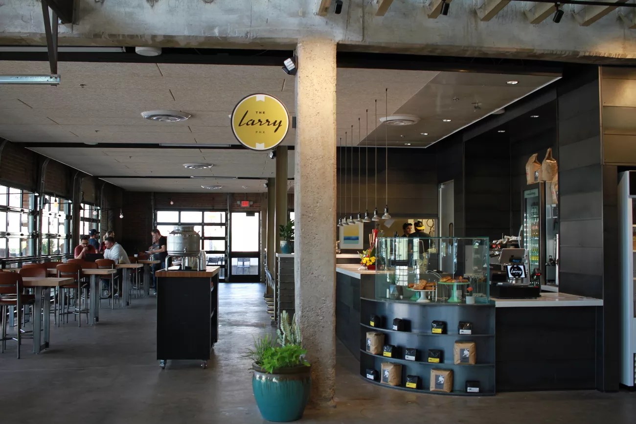 The restaurant aims to serve high-quality breakfast, lunch, and happy hour with a full coffee and cocktail bar. There’s a to-go case next to the coffee-bar with a wide ranging, revolving selection of items like fresh deli sandwiches, salads, and sushi. The Larry also has wood-fired pizza.