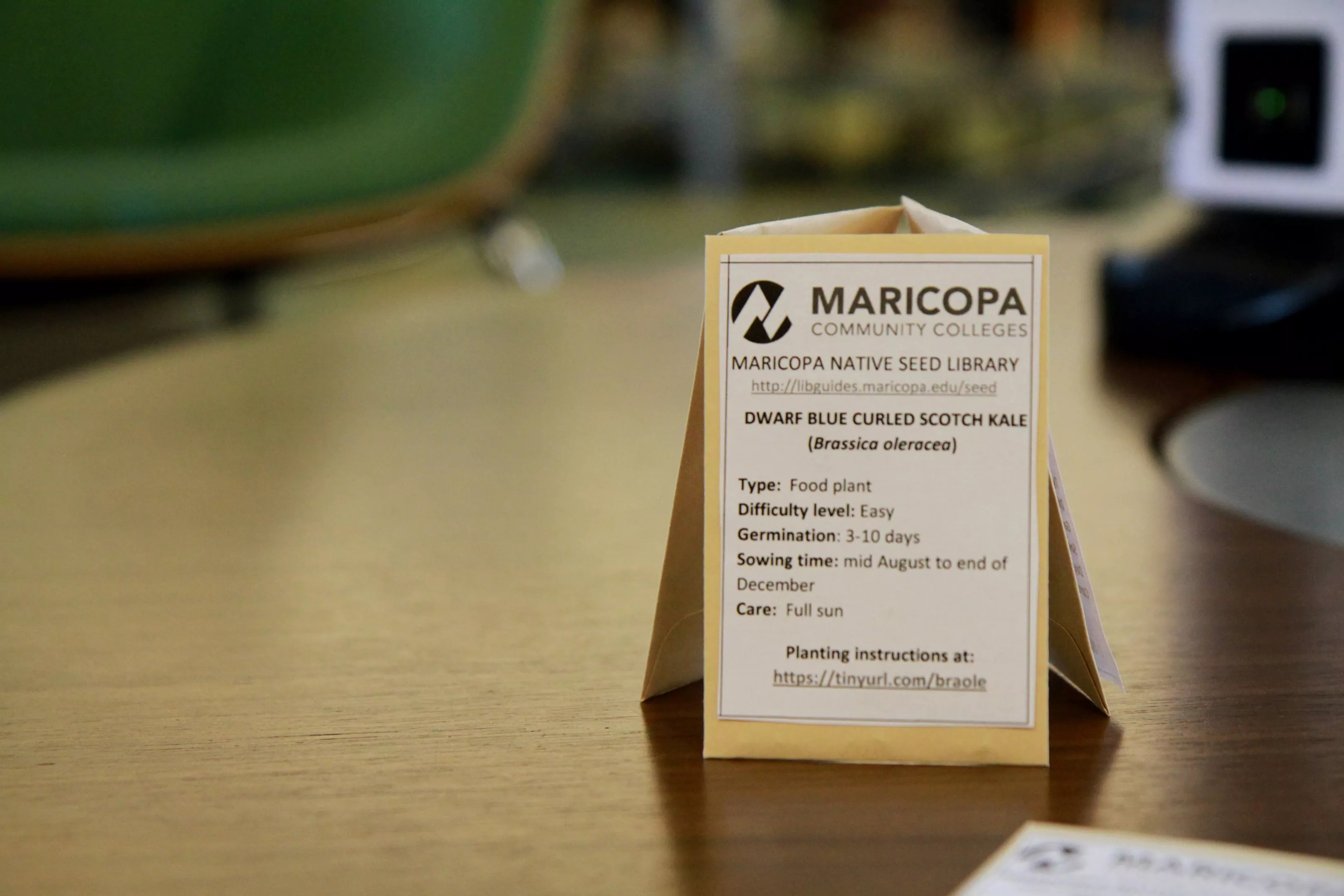 So far, food plants like kale, lettuce, and bean varieties have been pretty popular at GWCC (with Firecracker penstemon being by far the most popular desert landscaping plant). Other food seeds include Sonoran Winter Wheat, Salt River Pima Pea, and Desert Chia. Participants are also supported after pickup; Carlock says there’s some basic information about the plant on the packets, including whether it’s easy, medium, or difficult to germinate, and a tiny URL directing gardeners back to the plant’s profile page on the seed library website.