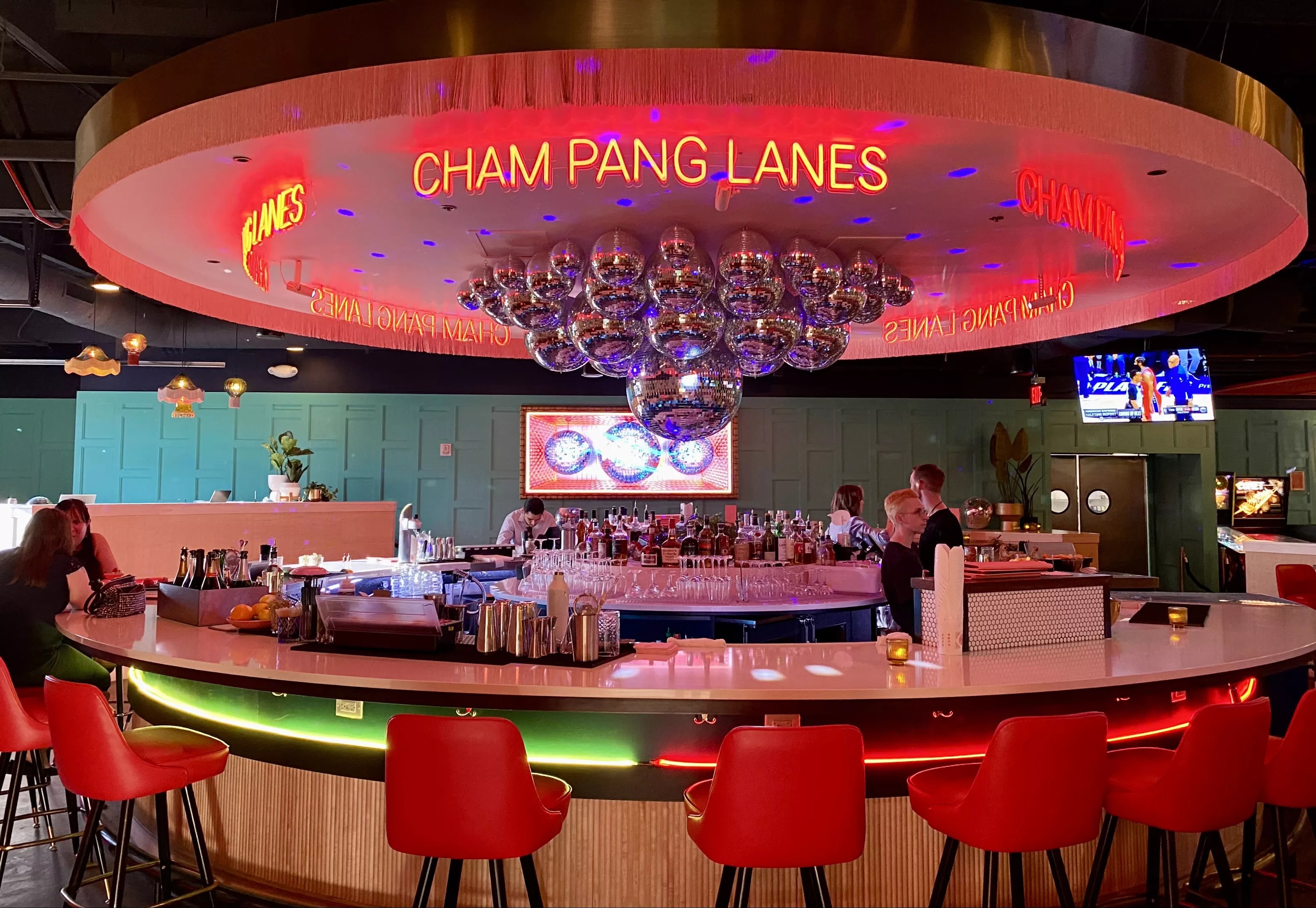 At Second Street and Garfield, you’ll find Palma, Ch’m Pang Lanes, and Ghost Donkey, a trio of concepts that gives you three ways to play. Palma and all its palmy, pink oasis energy is the perfect place for happy hour. Order a Prosecco and popcorn chicken or a mandarin sangria and marinated peanuts and pretend that you’re on vacay. Ch’m Pang Lanes is a bougie bowling alley where bowling in heels and a miniskirt is never out of place. Everything is sparkly, from the disco bowl décor and glitter bowling balls to the sparkly signature drinks. Finish the night at Ghost Donkey, a madcap mezcal and tequila bar bathed in pink twinkle lights.