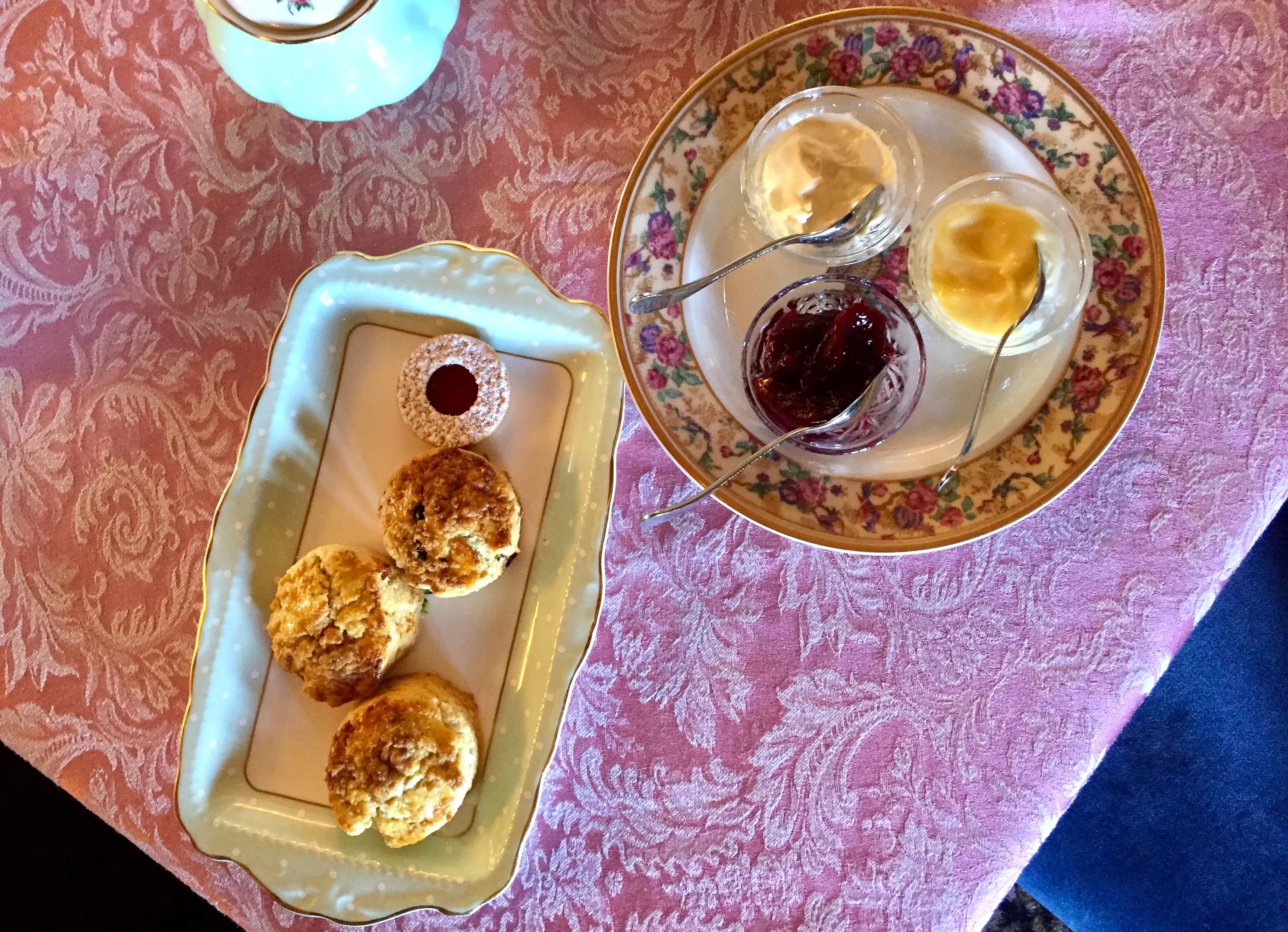 The first course to come out: tea sandwiches. A savory selection of asparagus and caramelized onion, smoked salmon with capers and crème fraiche and egg salad with radish, all sans crusts, of course. It’s impossible to nibble classic finger sandwiches and not feel la-di-da.