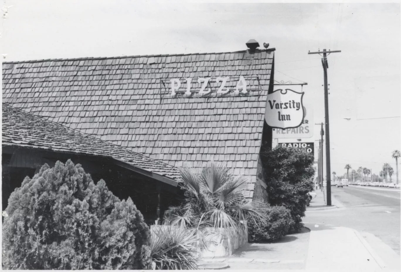 The Vine Tavern & Eatery has been a raucous little Irish tavern located at the southeast corner of ASU’s main campus since 1986. So there hasn’t been much change to speak of in recent history, but that doesn’t mean this recognizable little A-frame bar and grill on Apache Boulevard doesn’t have a past. General manager and longtime bartender Trent Robertson says the Vine building was a variety of restaurants under the umbrella of Varsity Inn – Varsity Inn Pizza, Varsity Inn Restaurant, and Varsity Inn’s Chimi’s, a Mexican food restaurant. Before The Vine became a go-to college hang in the mid-’80s, it was a Hooters. And originally, Robertson says, the building was designed as a Pizza Hut from the ground up. When it opened in 1961, it was very likely the first Pizza Hut in Arizona. “Crazy that Tempe had some of the big fast chain food restaurants going back to the ’60s, and right along the Apache corridor: Pizza Hut, Taco Bell, and KFC,” Jared Smith, Tempe History Museum history curator, says. “Old Tempe is all full of surprises, huh?”