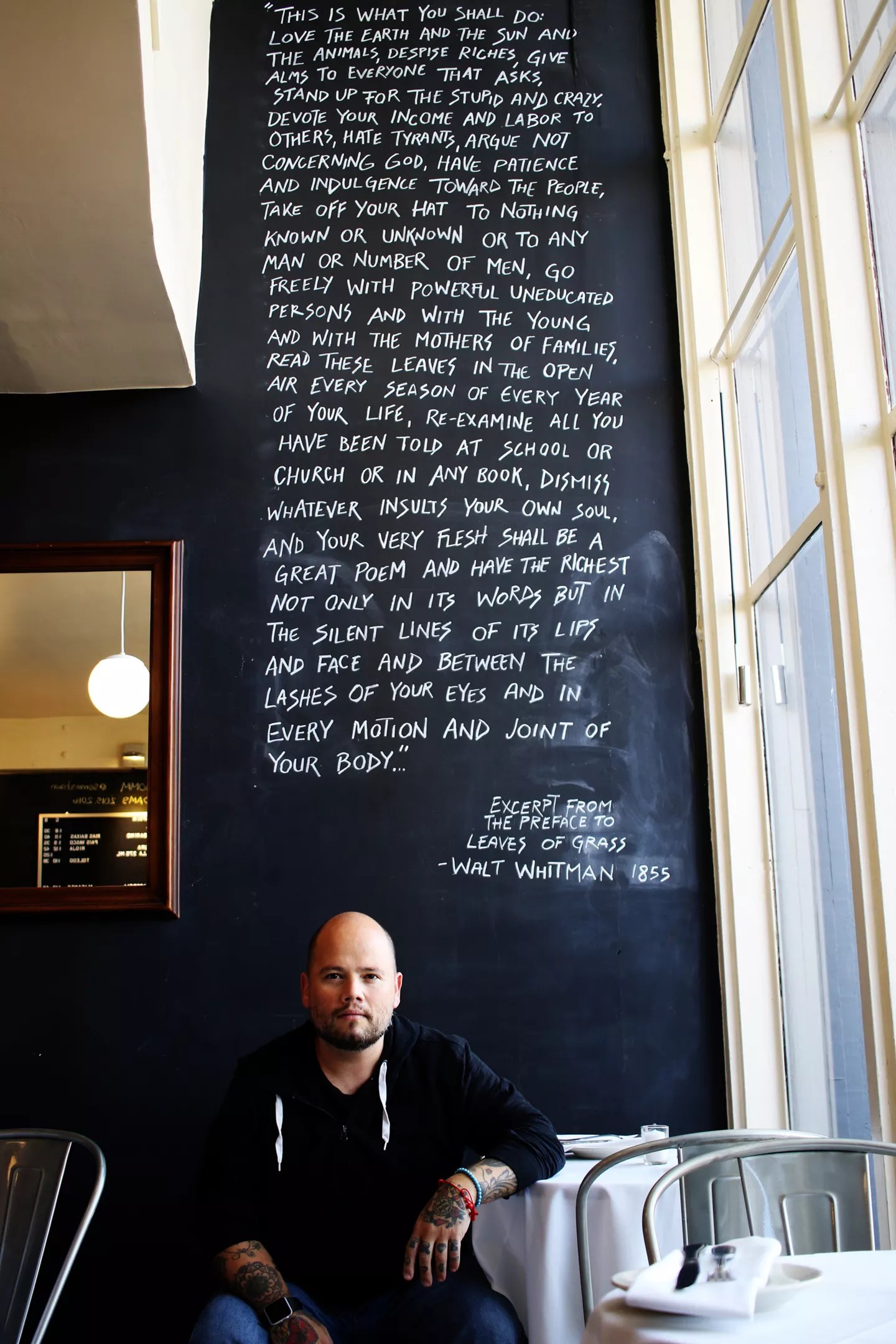 On a floor-to-ceiling chalkboard wall, a quote from Walt Whitman’s Leaves of Grass has been scribed that’s been an inspiration for years.