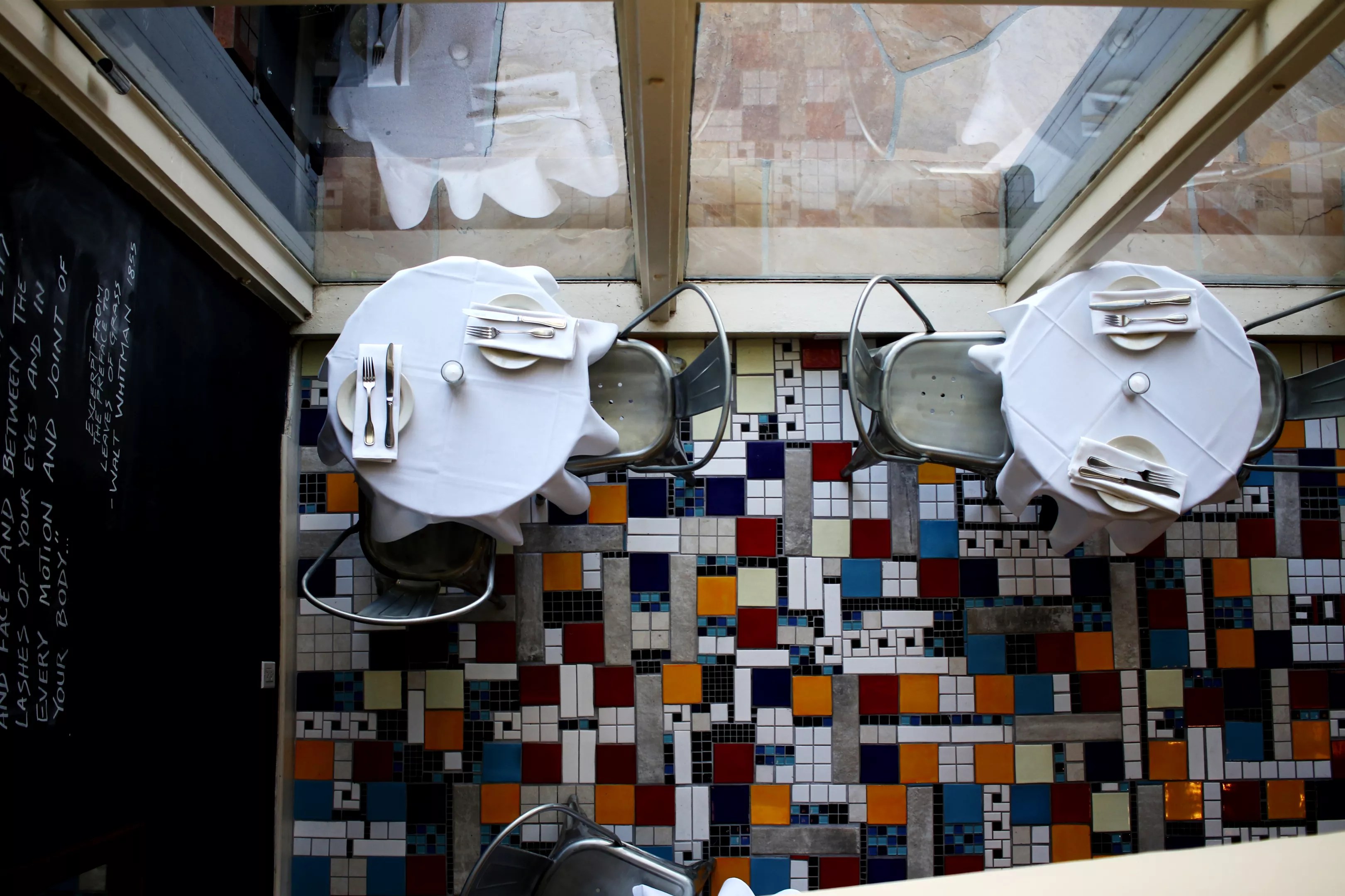 Opening a new restaurant just after a financial crash didn’t allow Milic and Badman a large budget, especially for a custom tiled floor.