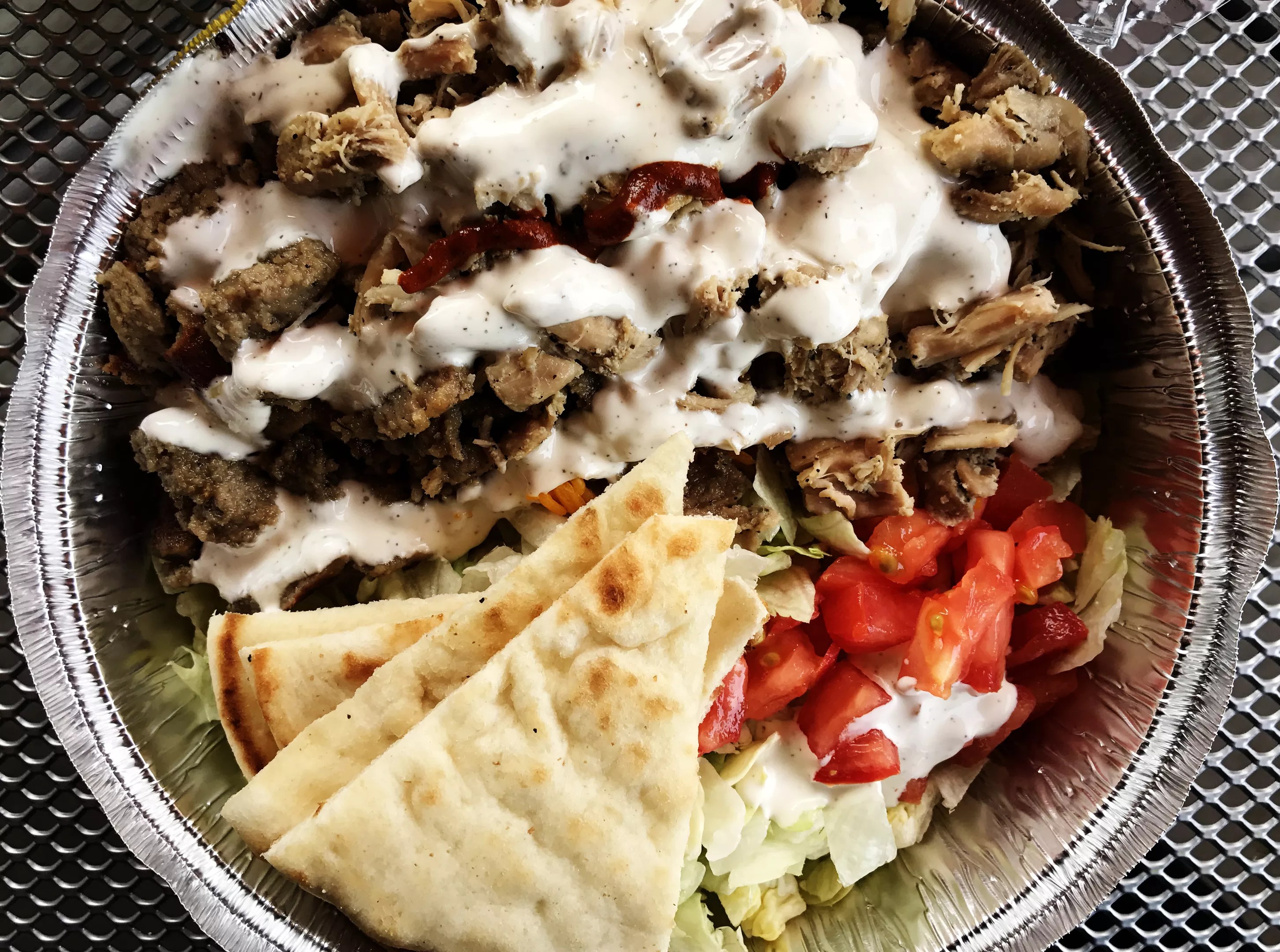 We took the employees’ advice and ordered the chicken and gyro meat combo smothered with both the famous white sauce and hot sauce.