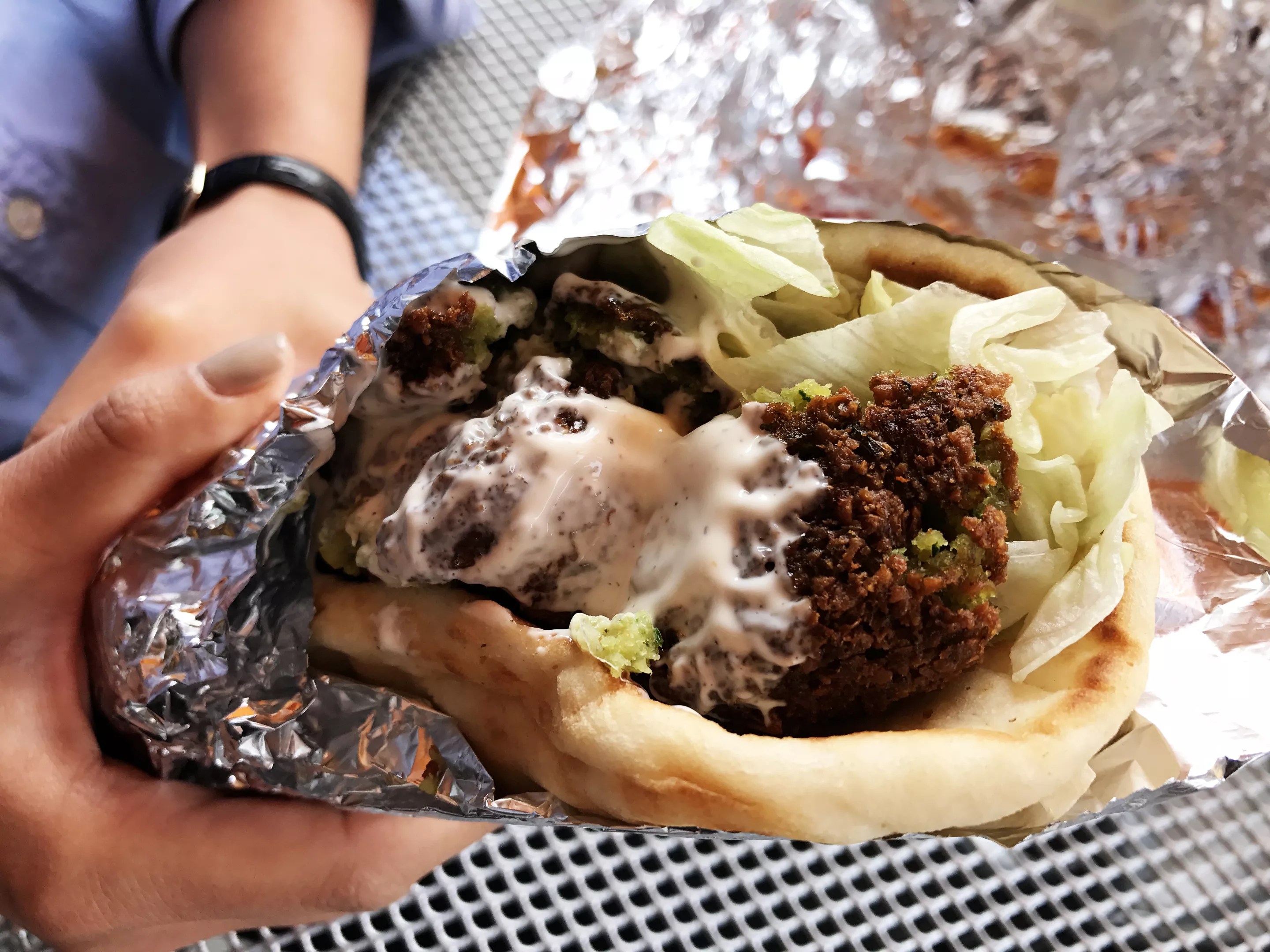 Thankfully, one employee convinced us to add the white sauce to the falafel sandwich, as well, and we are grateful. It saved what would have otherwise been a dry, unexciting wrap.