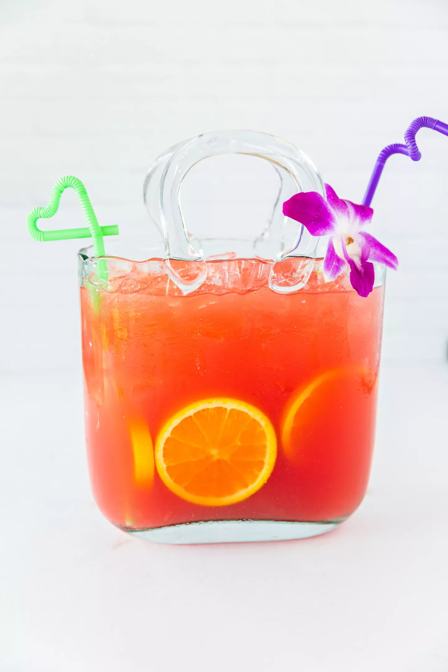 The Malibu Barbie, available at Hash Kitchen, serves a cocktail for two out of a purse.