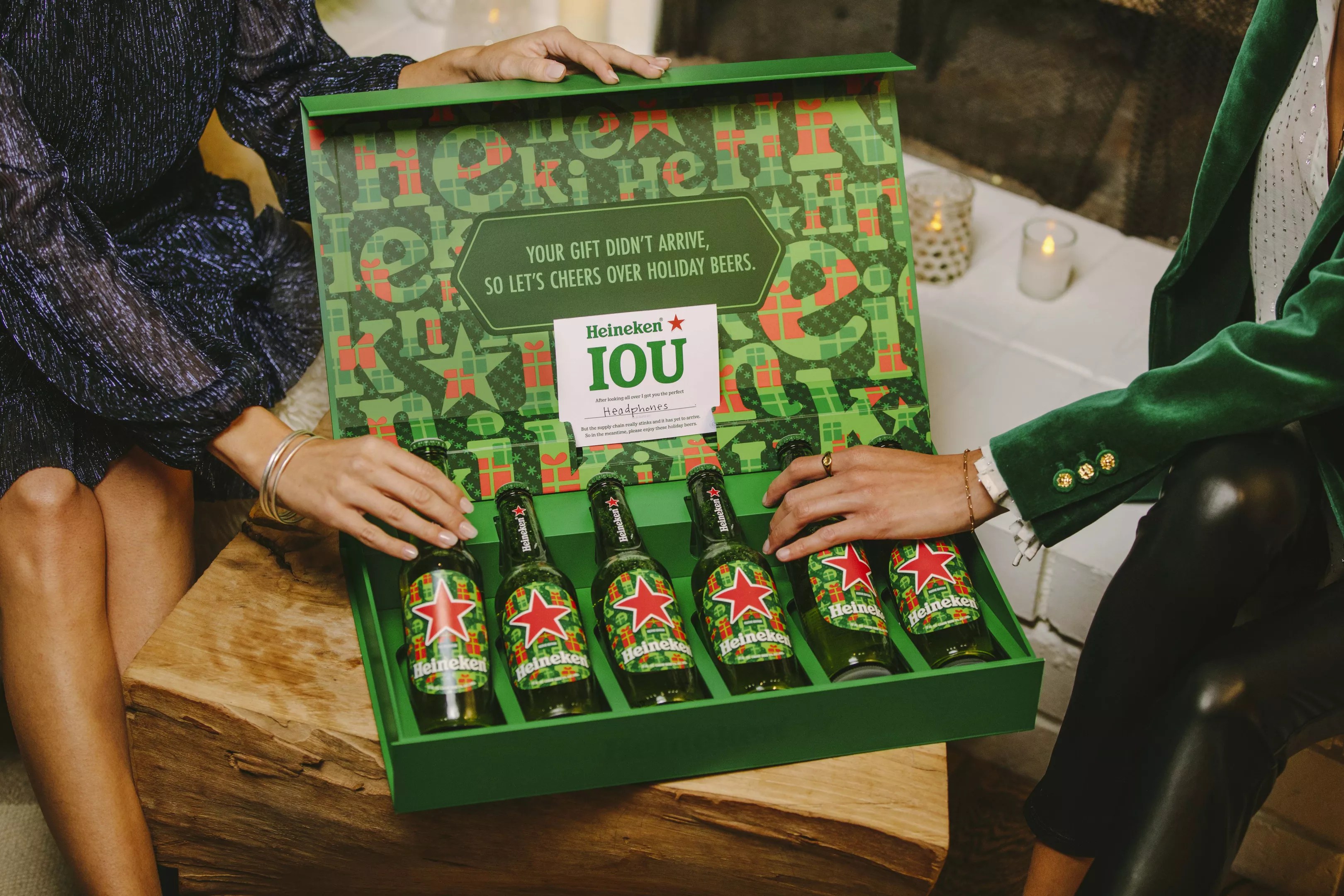 The gift box holds six bottles of Heineken and a personalized message that lets the recipient know their real gift is on its way.