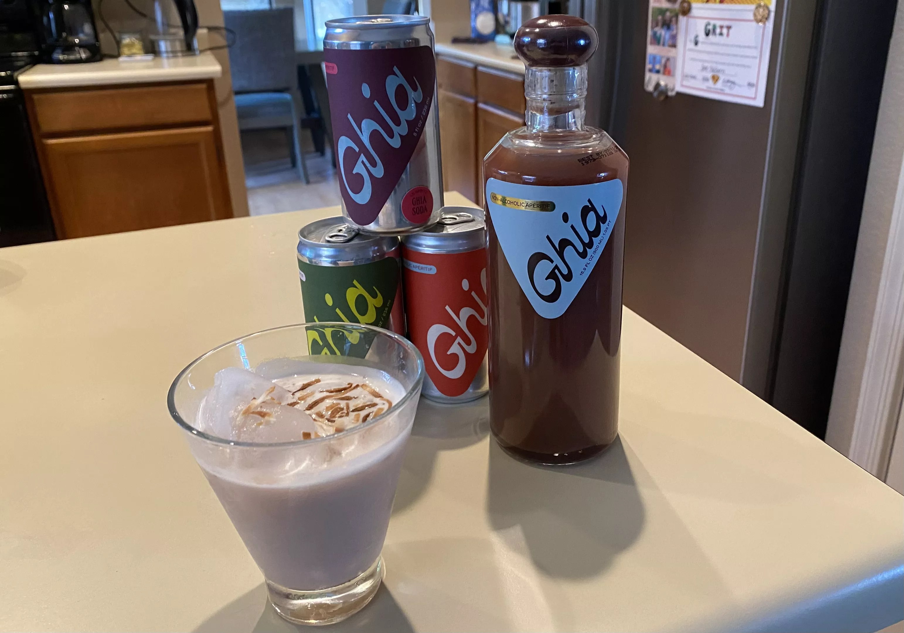 Ghia is sold in cans already mixed or in a 500-milliliter bottle for mixing at home to make cocktails like the “Ghia Piña No-lada.”