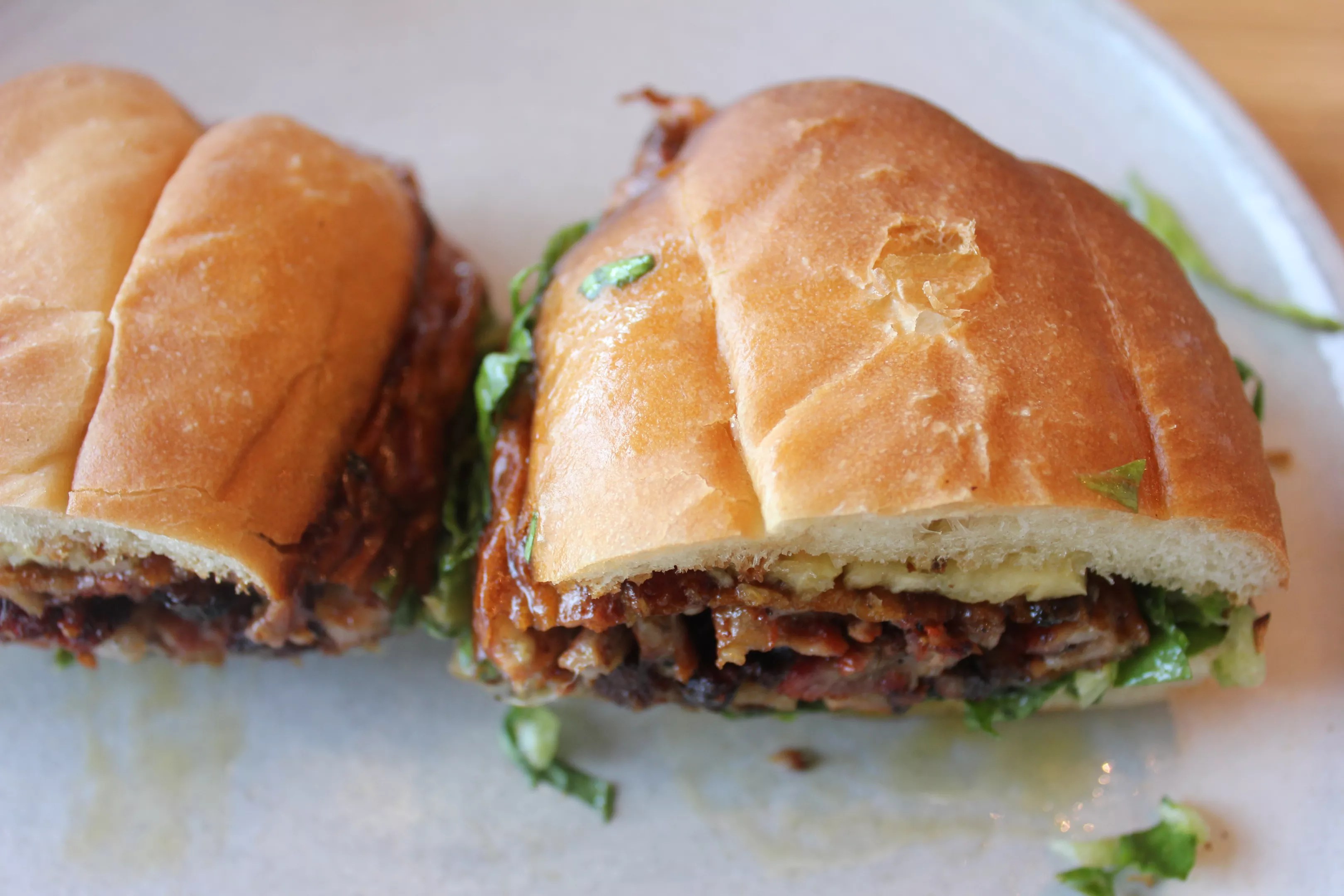 What’s also bomb about this torta is that each bite is different. Some bites you get more pineapple. Some bites bigger pieces of pork, more chewy bread, more cool lettuce.