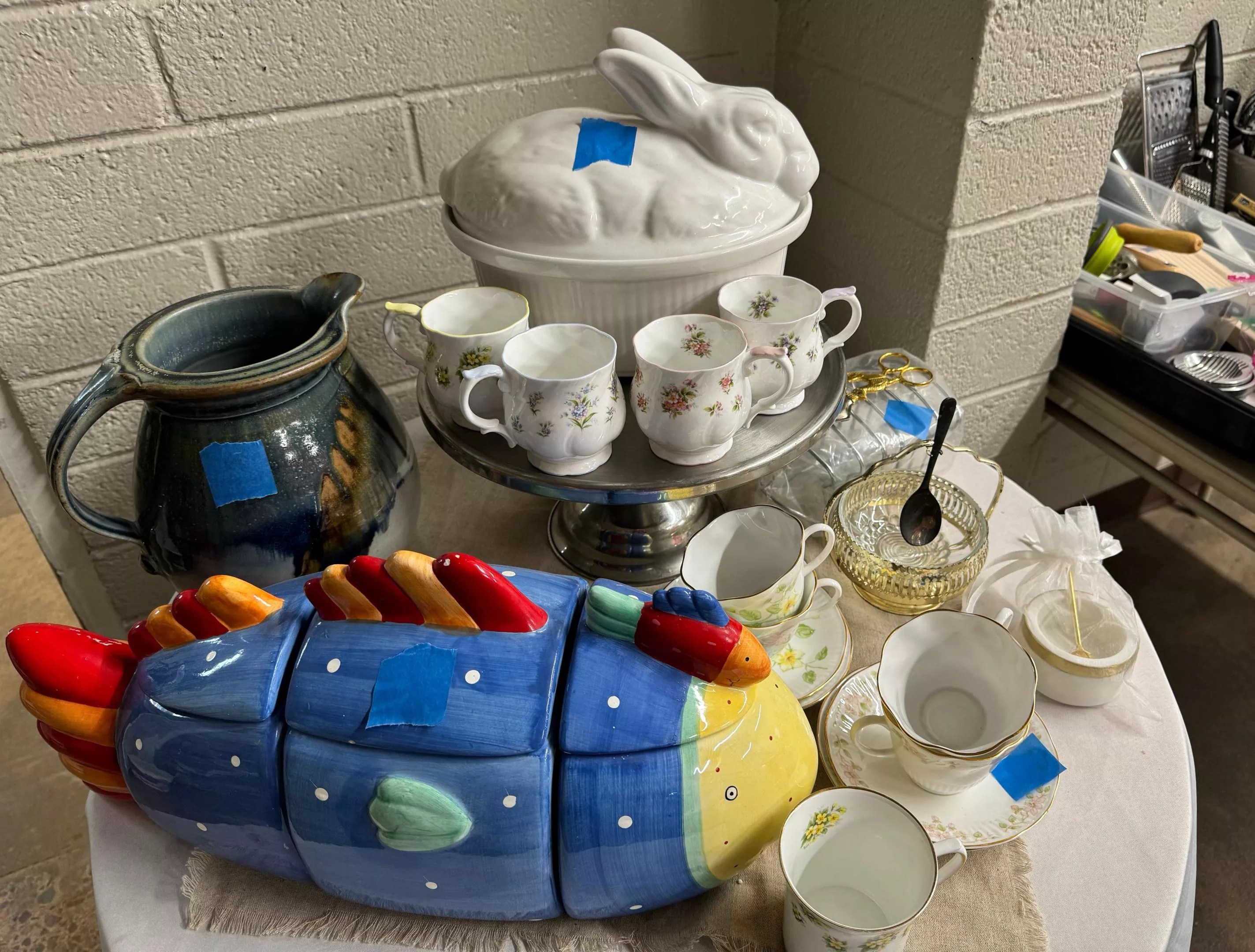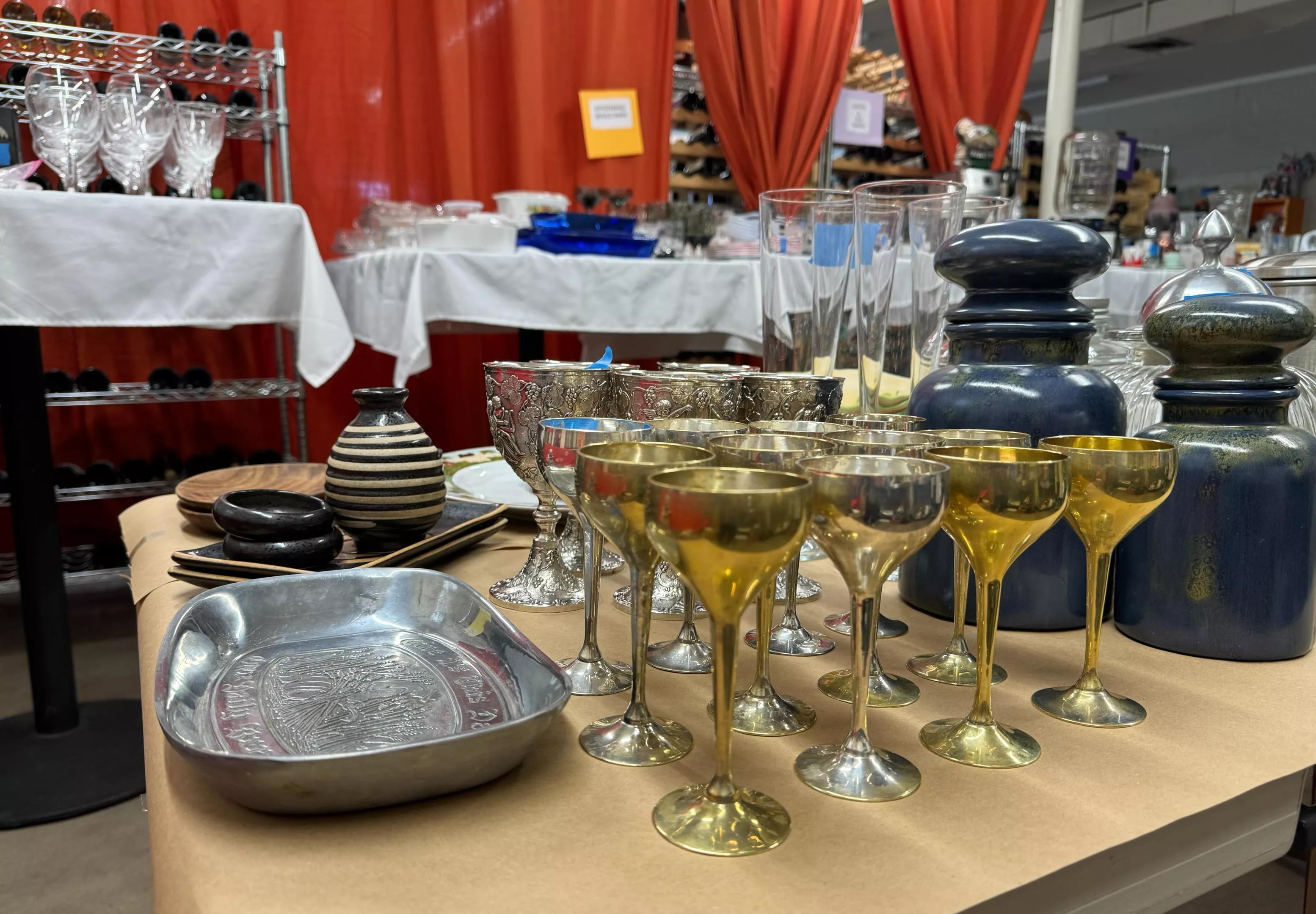 “There’s a lot of great things for entertaining,” Tracy Dempsey says of the items donated to sell at the Culinary Rummage Sale. That includes plates, wine glasses and more.