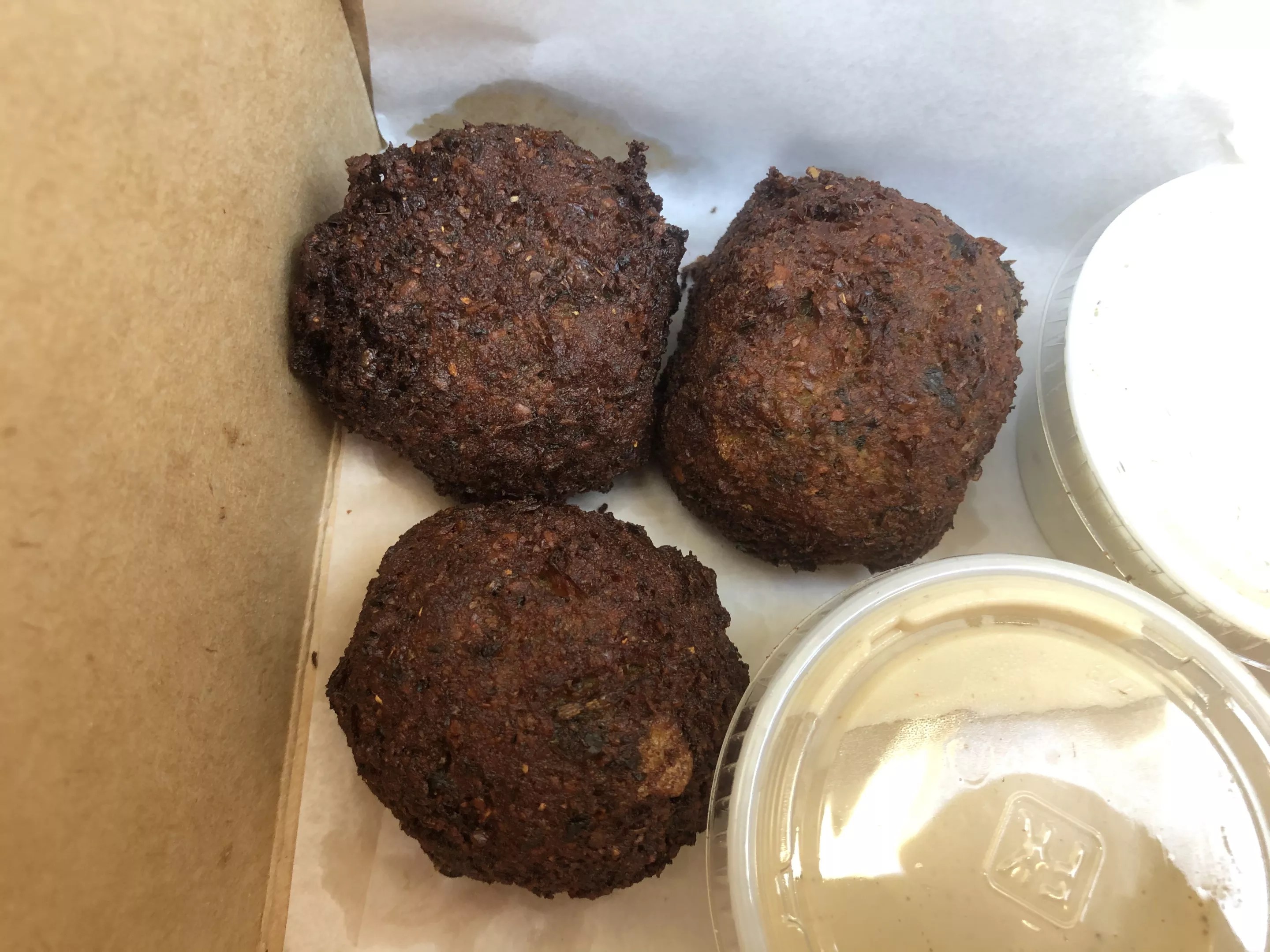 Unexpectedly excellent falafel, centers coursing with herbs and spice.