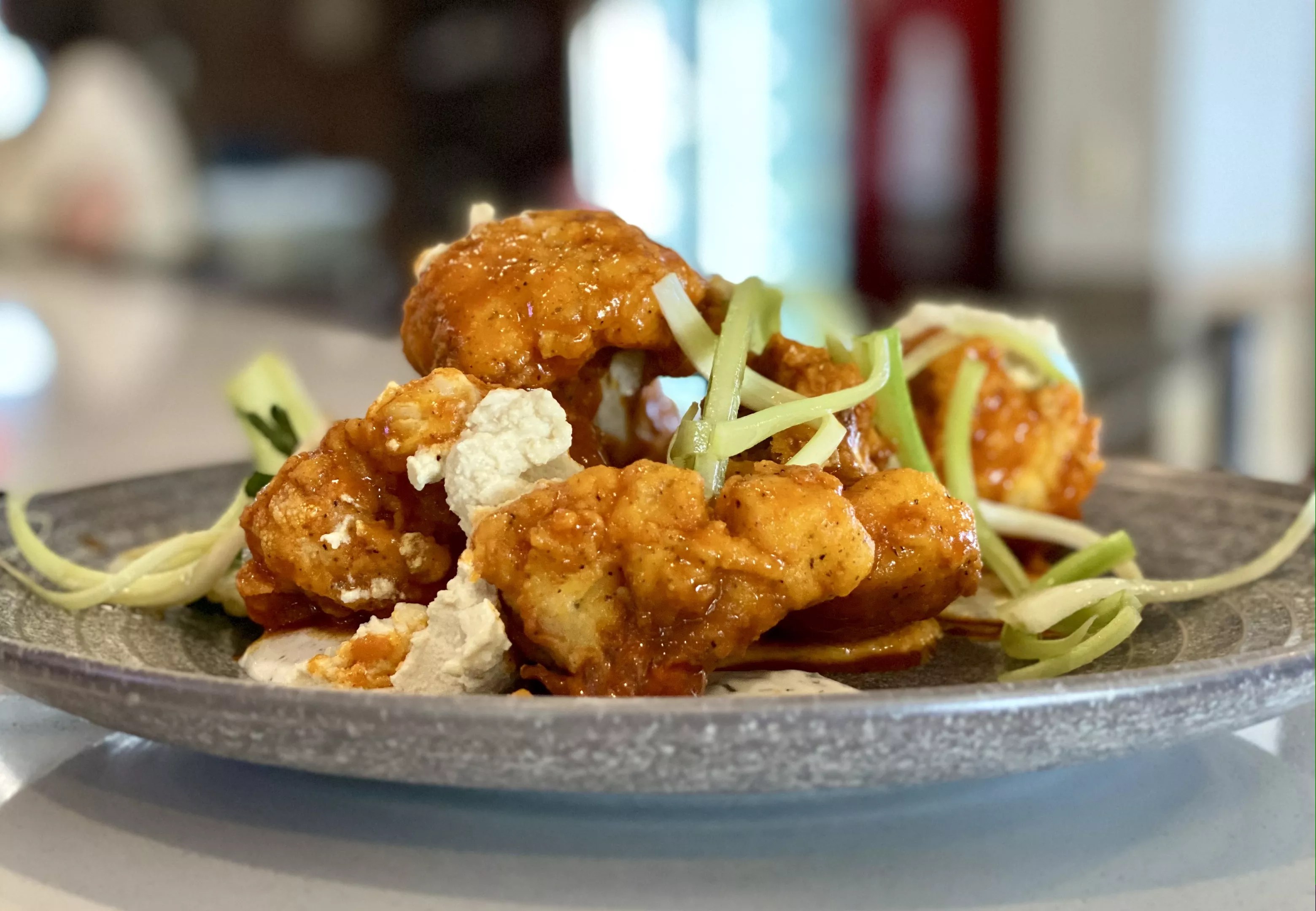 502 E. Thunderbird Road The Buffalo Cauliflower is a must-order dish at Vegan & Vine. A take on buttermilk-fried chicken, cauliflower is battered in a combo of flour, coconut milk and vinegar that both tenderizes the veggie and guarantees a delightfully crunchy crust. Add in the creamy vegan house ranch and crumbly gorgonzola, and you have a picture-perfect plate that comes piled high. It’s so popular, the family-owned vegan restaurant in Moon Valley has added two new sauce flavors: mango habanero and sweet chili. The tempura batter adds a light and airy coating to the vegan wings at State 48. Allison Young