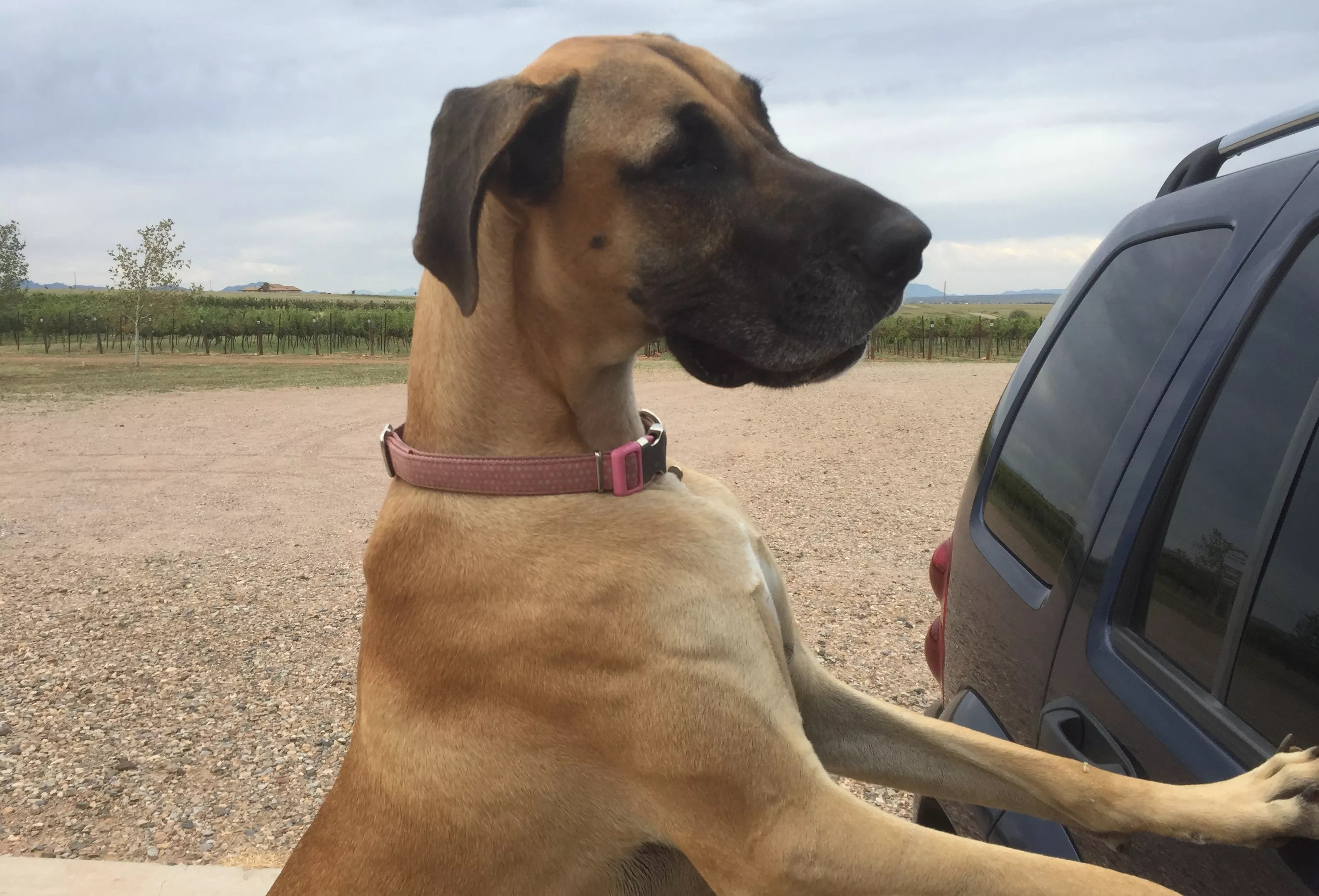The full Monty, a 105-pound Great Dane, greets you at Lightning Ridge Cellars